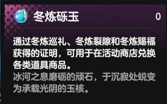 通过冬炼巡礼、冬炼裂隙和冬炼赐福获得的证明,可用于在活动商店兑换各类道具商品。