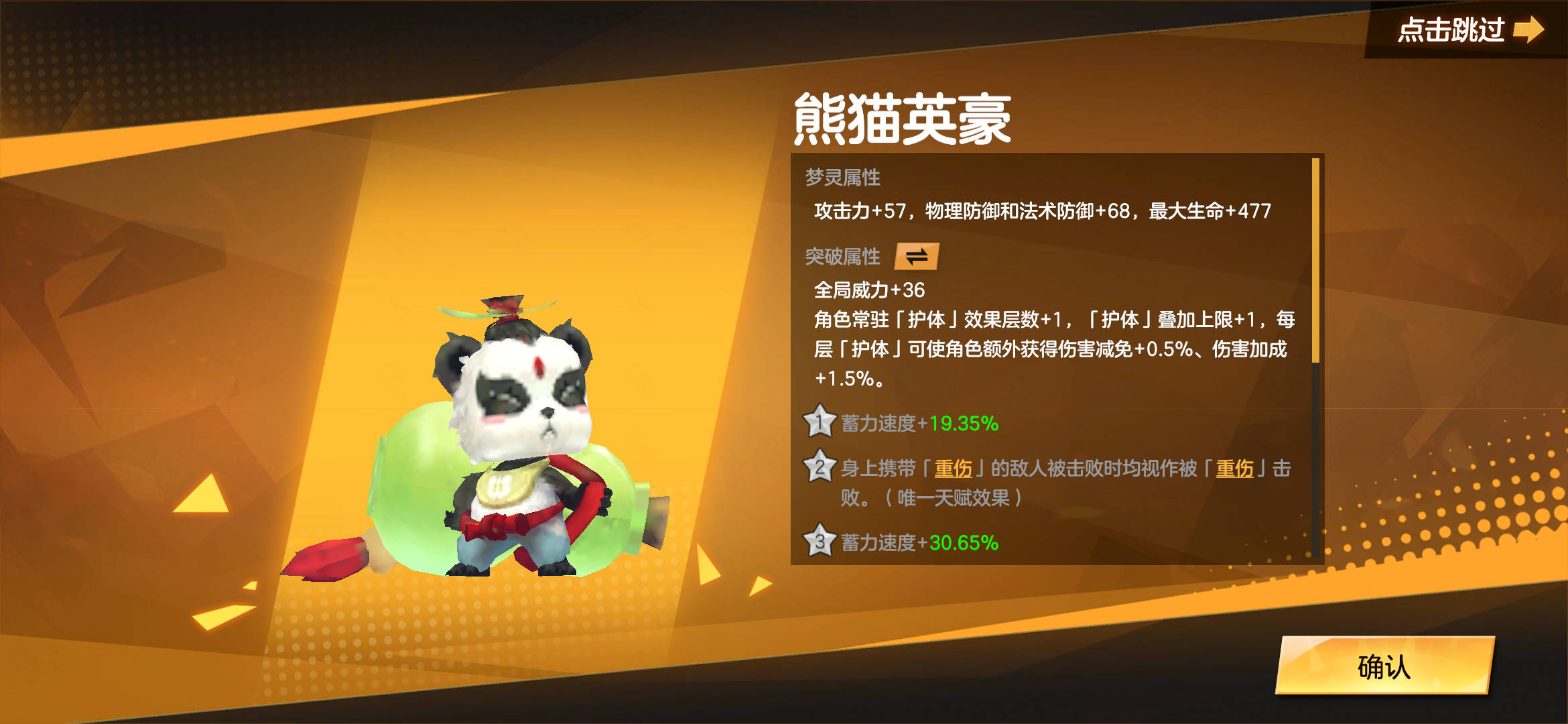 - 新增梦灵「幻影果」与「熊猫英豪」,可通过限时召唤获得。