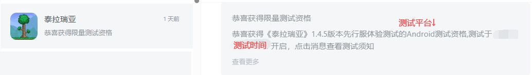 各位泰拉瑞亚的居民们,我们的测试筹备赶上了日程,按照之前的计划,可以如约在下周进行先行测试了!在与TapTap沟通后,我们争取到了最大的先行测试额度,预计在测试开始时,能够发放2-3K测试资格,我们...