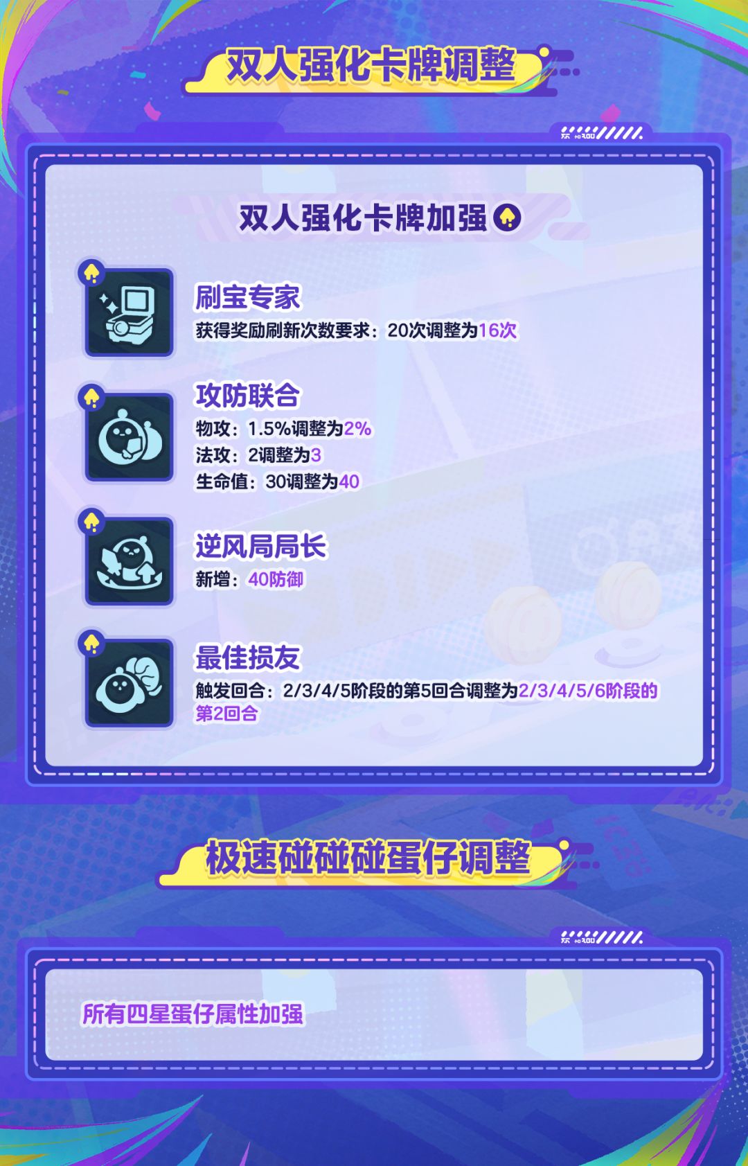 1月29日,蛋仔碰碰棋对部分蛋仔、羁绊、强化卡牌以及双人卡牌进行调整!