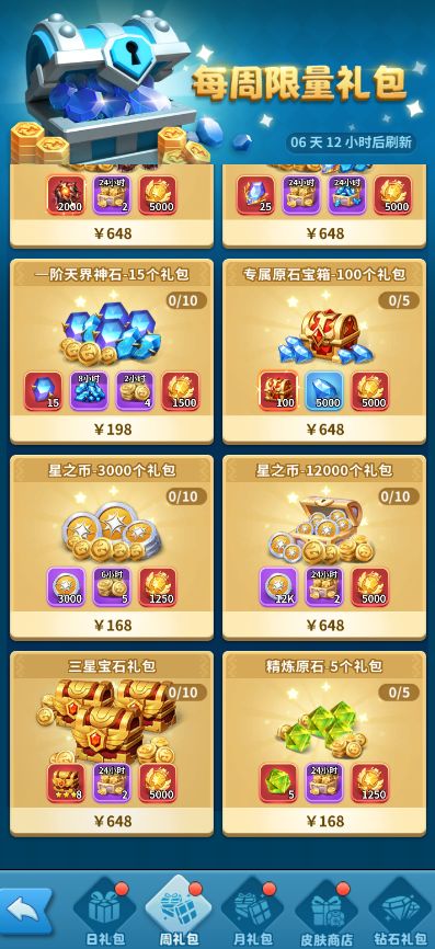 5、装备精炼需要消耗金币和新道具-精炼原石,在周礼包和月礼包内也将增加相应材料的售卖
