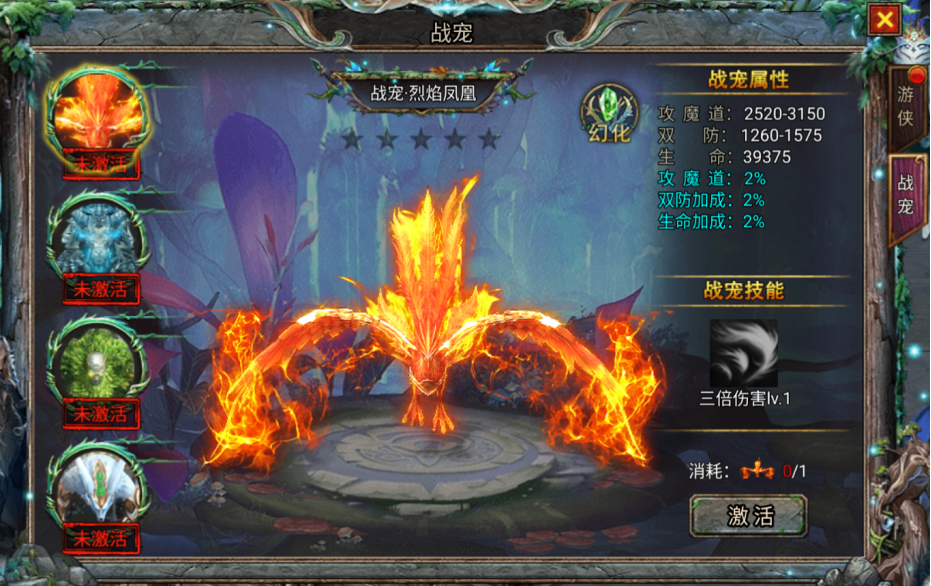 激活战宠带来的特殊技能也很关键,可增强角色的战斗能力!在【王者之路】集齐4件信物碎片即可在【战宠系统】功能内合成战宠,每个战场幻化后附带专属特性(例如:所有角色每次攻击有概率触发三倍伤害,并有概率触发三倍暴击),实现强力技能与属性的加成!