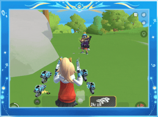 肠肠在SS24赛季经典派对搜集物资时,可拾取到1级、2级、3级三种规格的「能量八翼芯片」,该芯片可装配在能量双枪新增的专属芯片插槽中,装配后,肠肠背后将浮现悬浮武器协同攻击!