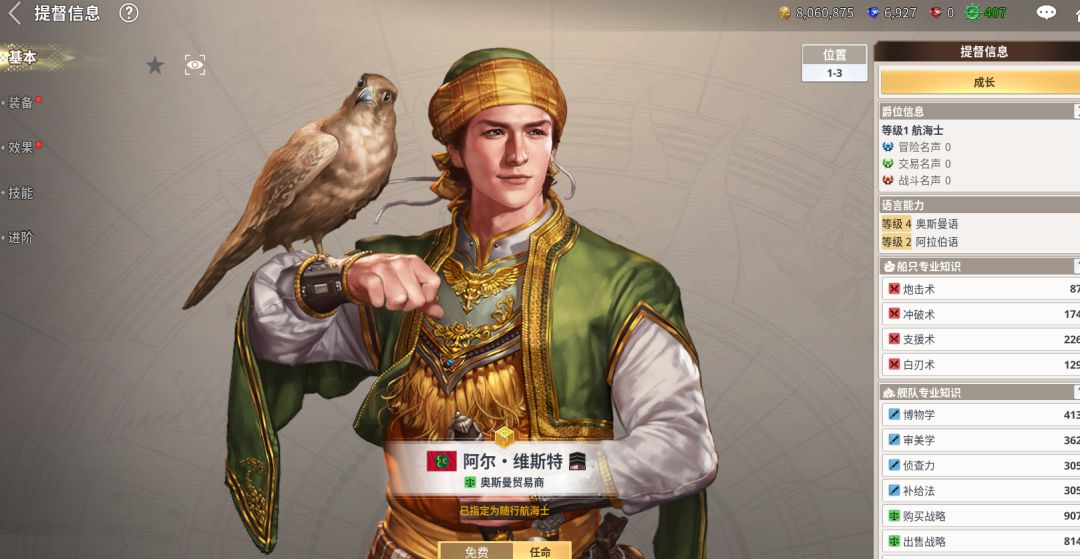 9. 初期赠送选择提督建议选阿尔,适合跑商的提督。