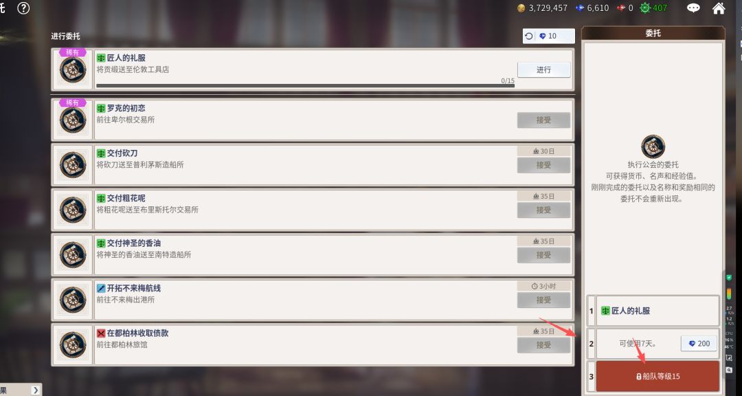 我们在做主线提督编年史的时候,可以接取一些公会委托,顺路做一做,可以获取大量金币及经验。建议做这些稀有的委托。