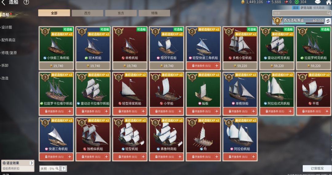 如图需要西方造船等级达到6级,才可以建造!