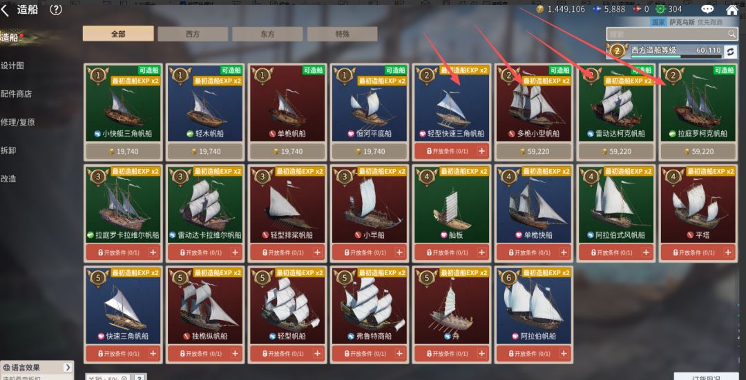 5. 造船也要按照不同类型的船只造,如探险,贸易,战斗。这样也便于收集