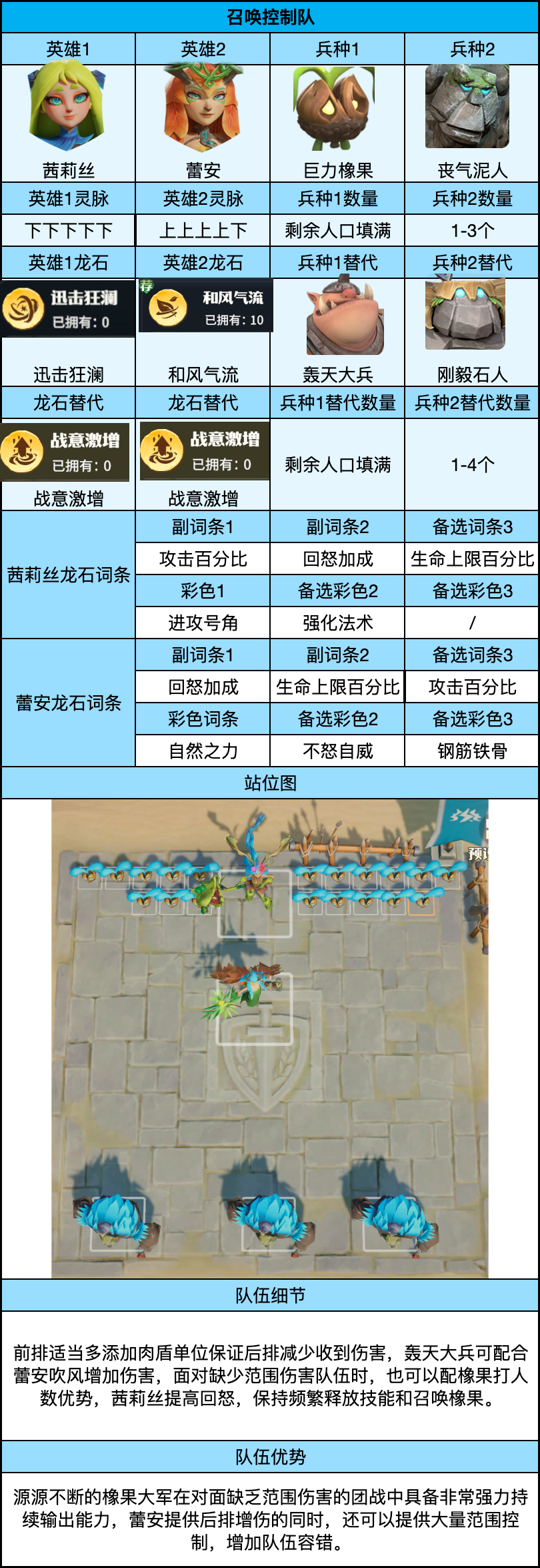 本套阵容队伍英雄以神话以上为主,龙石要求5个专属以上的进阶版配置。