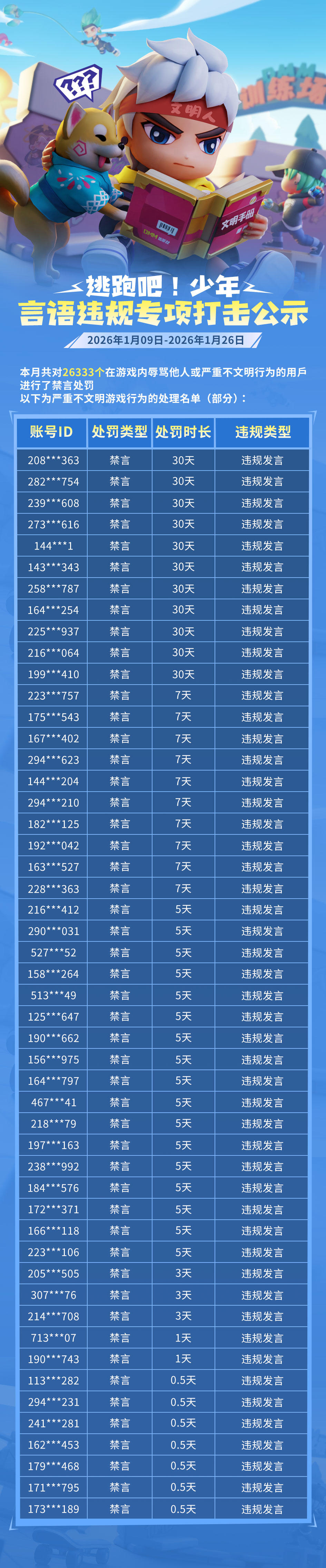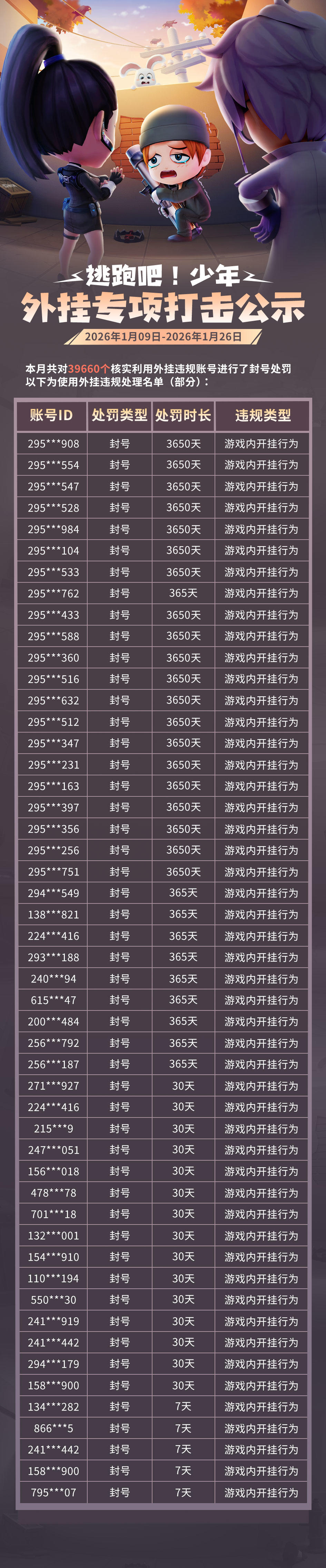 游戏安全处罚公示(1月9日——1月26日)