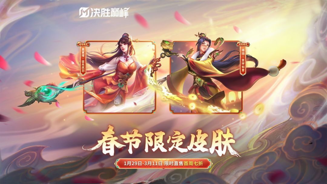 1月29日-3月11日,奥黛塔「吉光凤羽」、珞翊「吉祥如意」将正式加入商店,首周七折优惠~