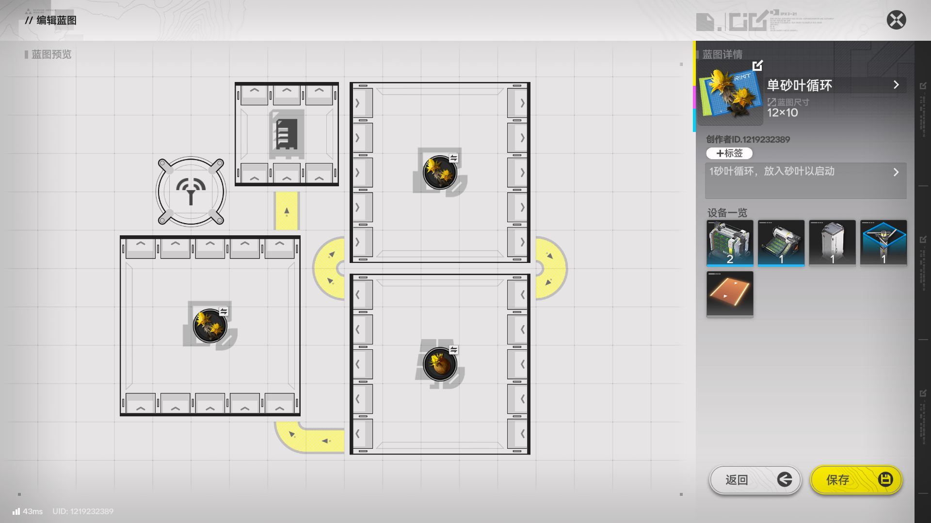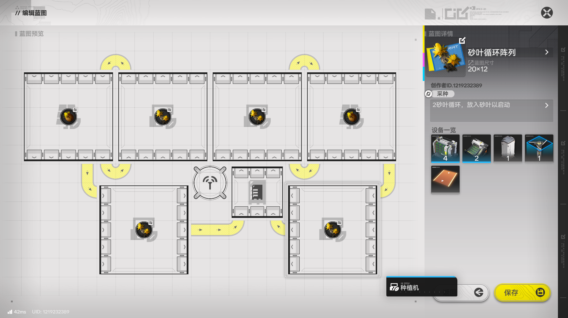 图一6电池3装备方案,放一个“电池+半速装备”,耗电1540,使用7砂叶循环,也就是放4个砂叶循环阵列,其中一个关掉一半就行,或者放砂叶单循环。