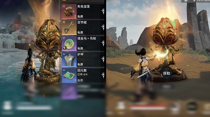 若【失色宝莲】掉落在地图上或是魂冢中,将在大地图上显示图标。如果看到,记得去捡漏哦~