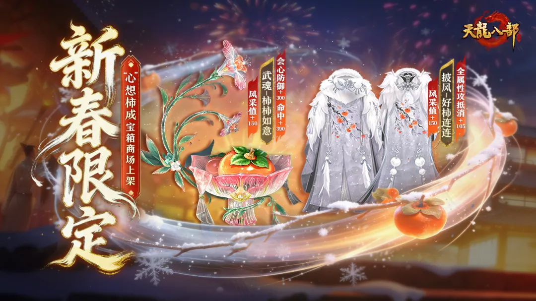 想要把这份吉祥好运收入囊中?机会来啦!2026年1月29日至2月2日期间,【心想柿成宝箱】将限时上架元宝商城,每开一次都能获得平均价值168元宝的稀有道具,并有一定几率额外获得【好柿成双礼盒】,好运加倍!
