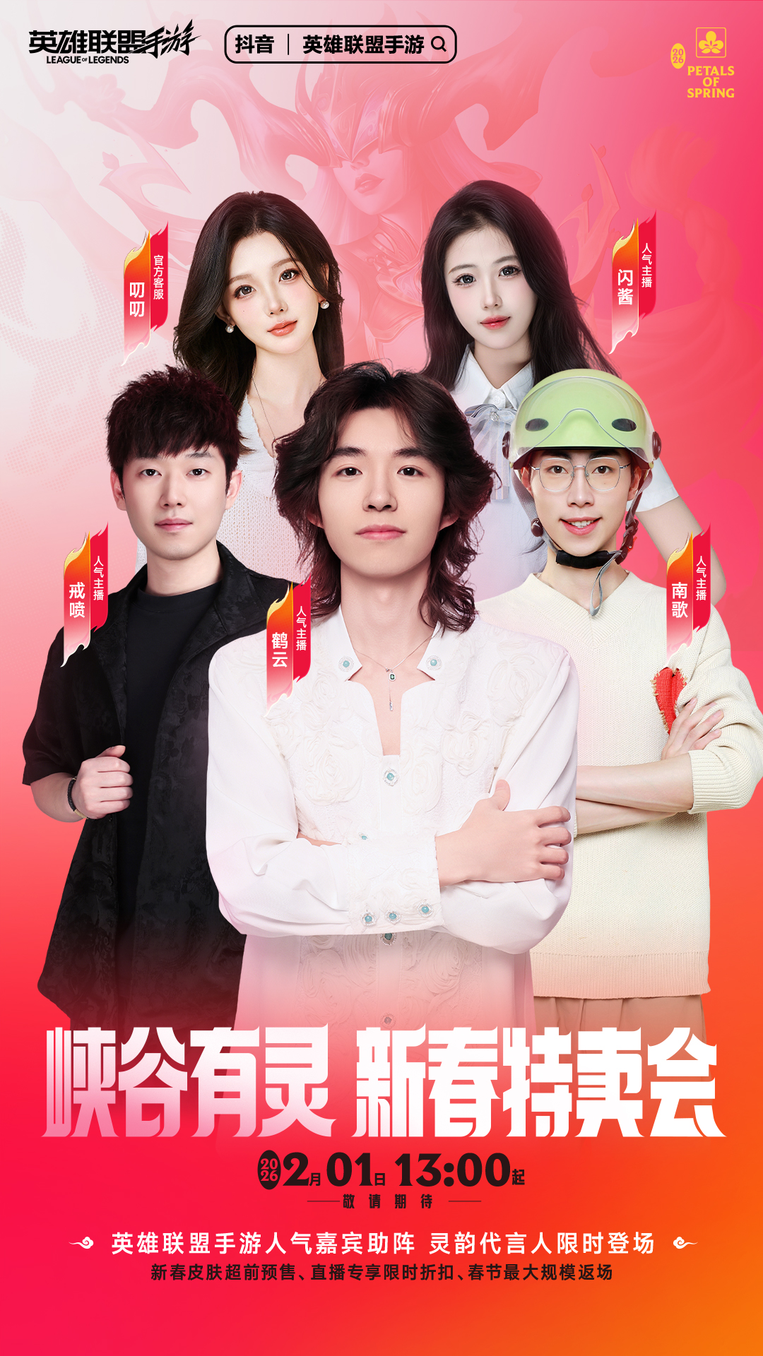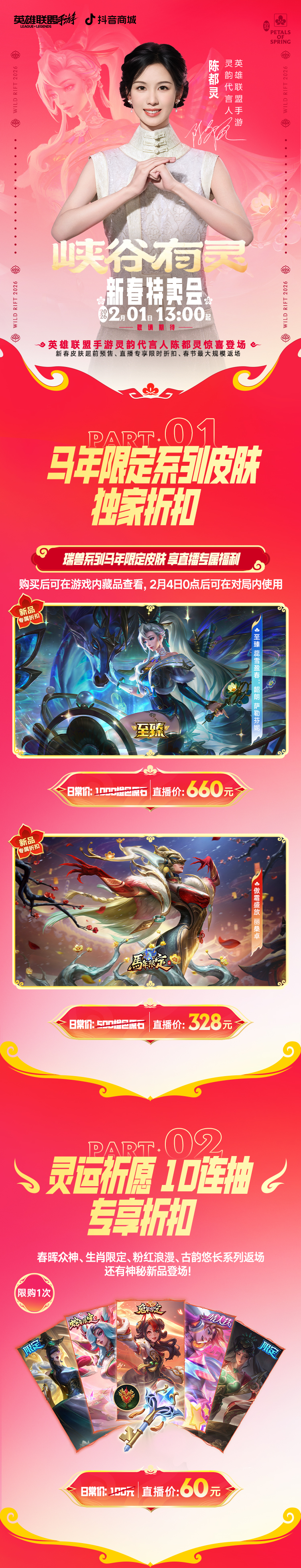 2月1日13:00起,锁定《英雄联盟手游》抖音官方直播间,和陈都灵一起灵运贺岁,燃爆新春!