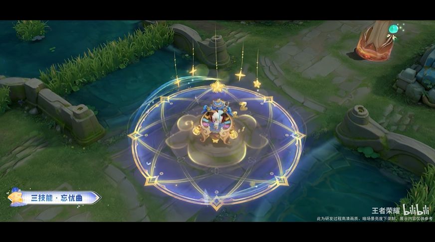 三技能展开星光捕梦网法阵,虹色星石纷飞,车座下萌物还会发出酣睡呼噜声,童趣与梦幻感拉满。