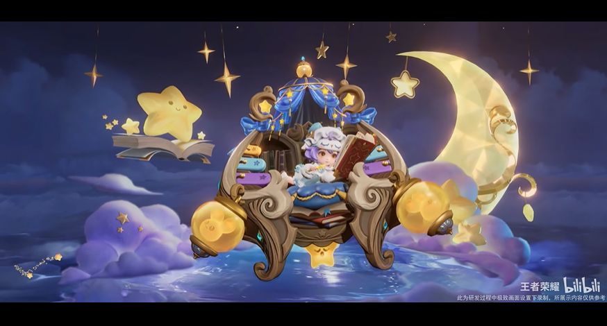 这款皮肤以童话梦境为核心设定,蔡文姬化身天才少女作曲家,身着简约可爱的睡衣套装,搭乘堆满童话故事书的小车,带领玩家穿行梦境开启奇遇冒险。