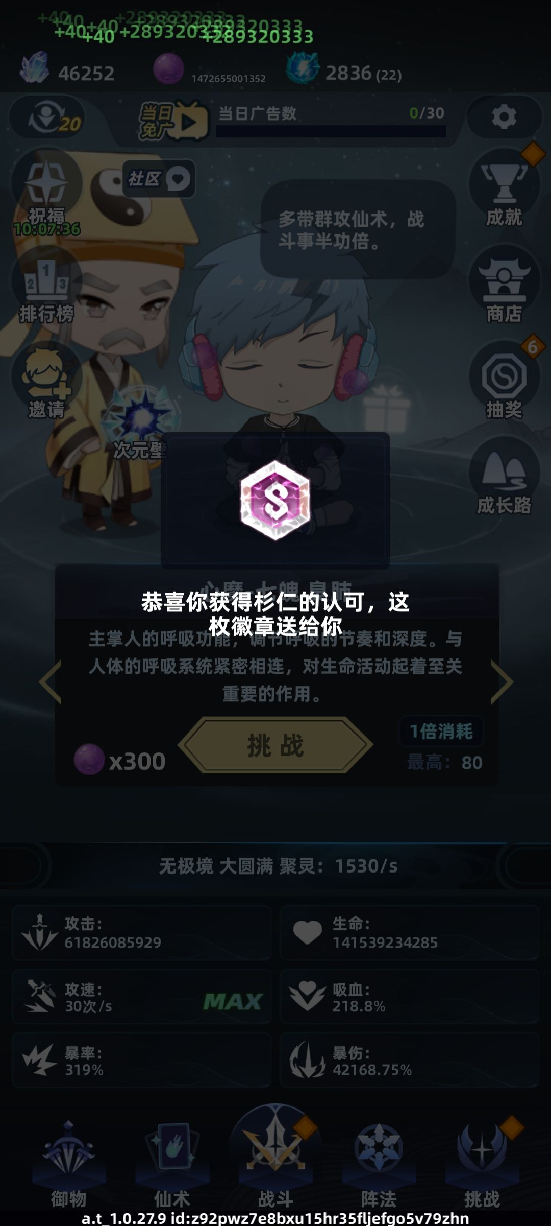 就是二十转在无邀请、无基金、满祝福加成、仙术满级、阵法全满级、道侣满星满级、御器满星满级、成长路领满的情况下,人物属性拉满之后的截图记录![[崩3_不愧是我]](https://img-tc.tapimg.com/market/images/5571597db812bb3da9218eca9d538a48.png)