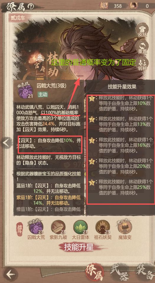 第五技能被动魔猿变,划重点,我们全套输出大部分是依赖debuff的,而debuff施加的成功率决定于对方的威仪属性,林动的技能再次与我们的思路不谋而合。