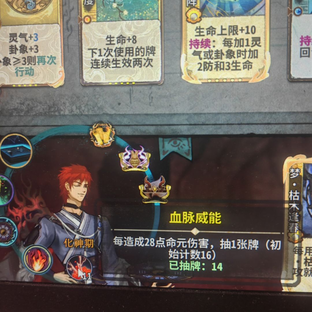 过渡以及d牌节奏:一般3/5/8/11升本,突破筑基金丹和元婴之前都推荐先找一下梦卡确定对应的过渡思路,一般是速杀(需求元婴大d至小成),卦奶(需求发两仪或二级静气,元婴找到推衍和2再动),黄雀或枯木(纯打工,元婴摆烂)。金丹可以适当d几下常规卡提升一下战力。梦卡一般三轮2d,5轮3d,8轮2-3d即可,然后可以把关键的卡升到元婴,七星的梦卡大多都是到元婴会有质变。