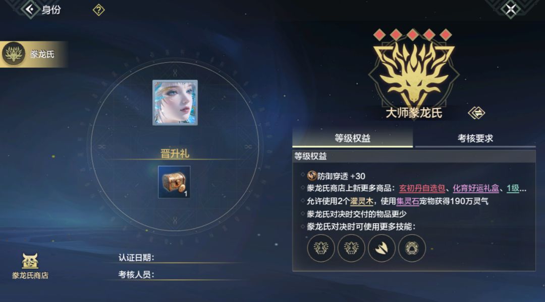 ○ 豢龙氏身份等级权益展示