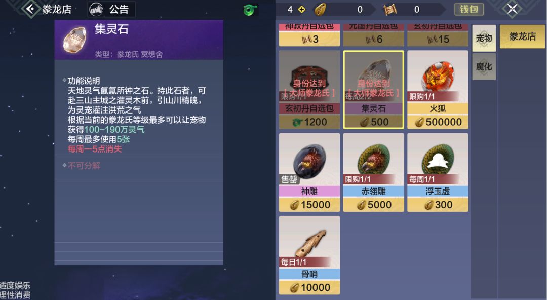 而豢龙氏等级达到大师豢龙氏的旅者,还可以在豢龙氏商店直接进行集灵石的购买,方便快捷!