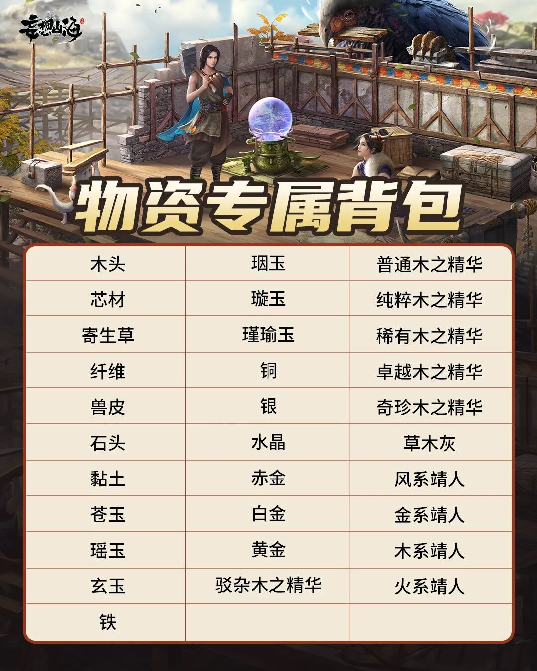 木头、芯材、石头等基础物资,还有各位山海资本家的小靖人,虽然我们已经一而再再而三的调整了堆叠数量,但由于使用量级较高,且物资类型较多,对于旅者们的背包仍然存在较大的负重和空间占用。