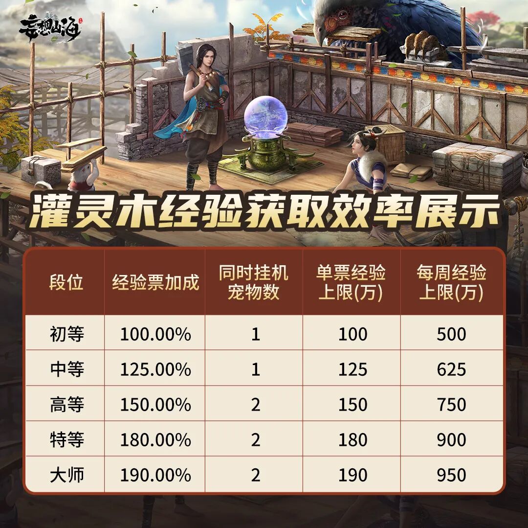而宠物经验的获取效率,与豢龙氏身份等级相关,旅者豢龙氏等级越高,宠物在灌灵木获得经验的效率亦越高,甚至单周经验高达近1000W!