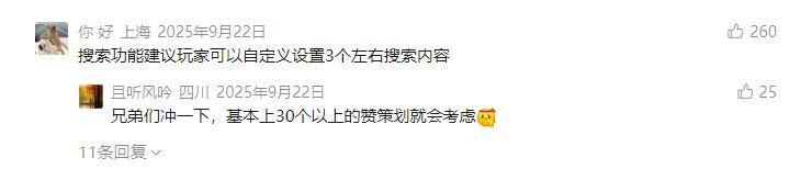 而在评论区,我们也留意到了不少旅者反馈,希望搜索功能可以自定义设置多个目标: