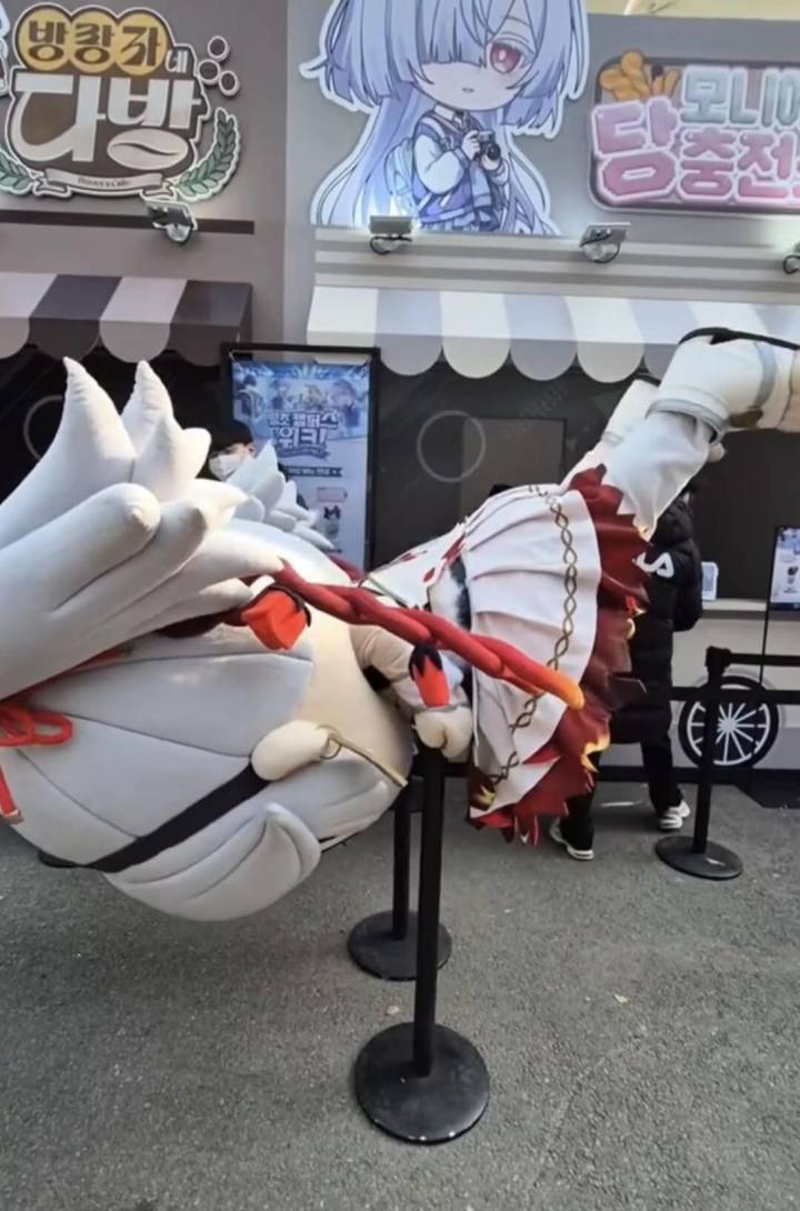 近期,《鸣潮》在韩国举办线下活动,游戏吉祥物“椿”的玩偶人在与观众进行的互动掰手腕比赛中,将一名男性玩家的手臂“掰”骨折了。