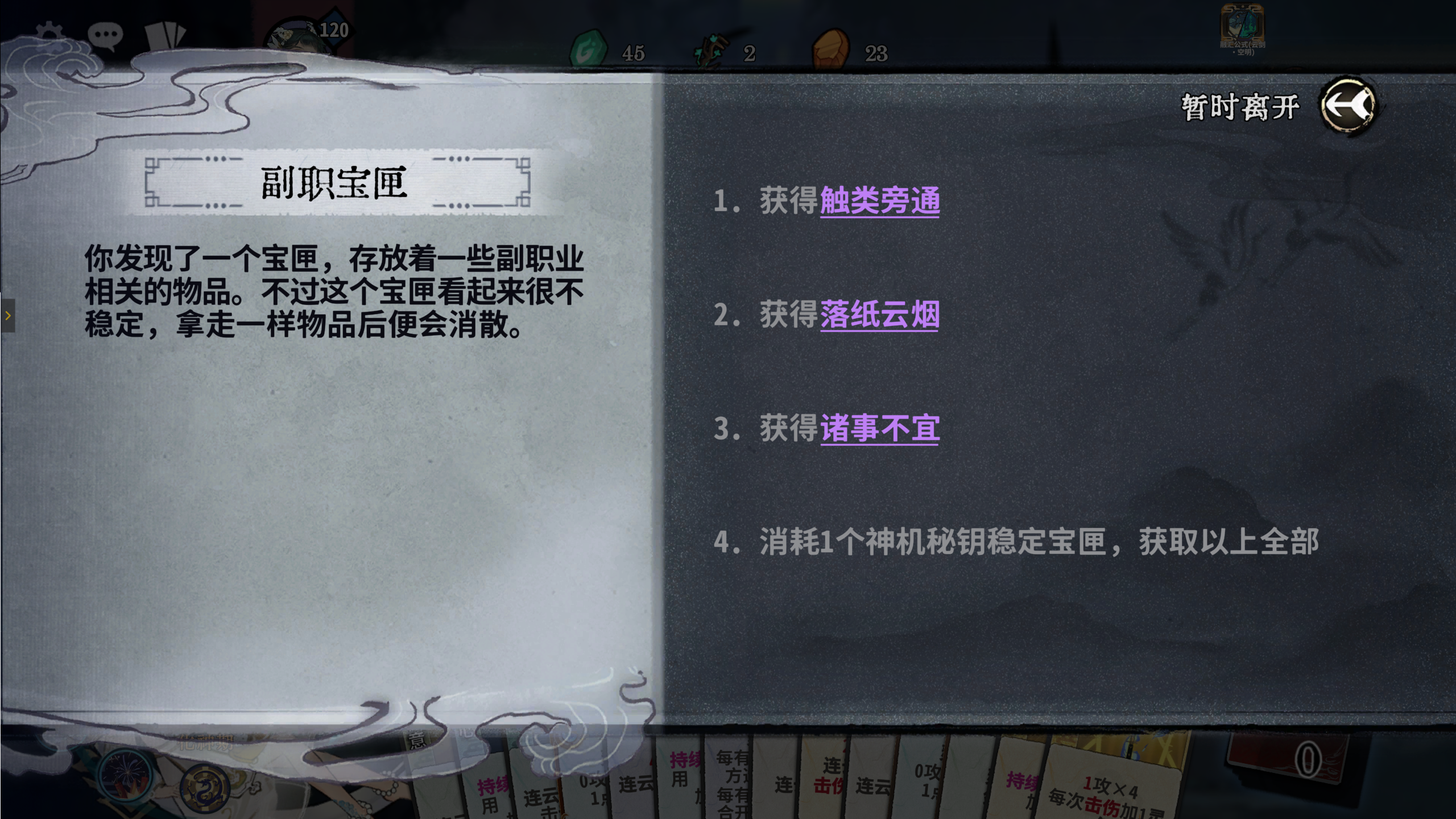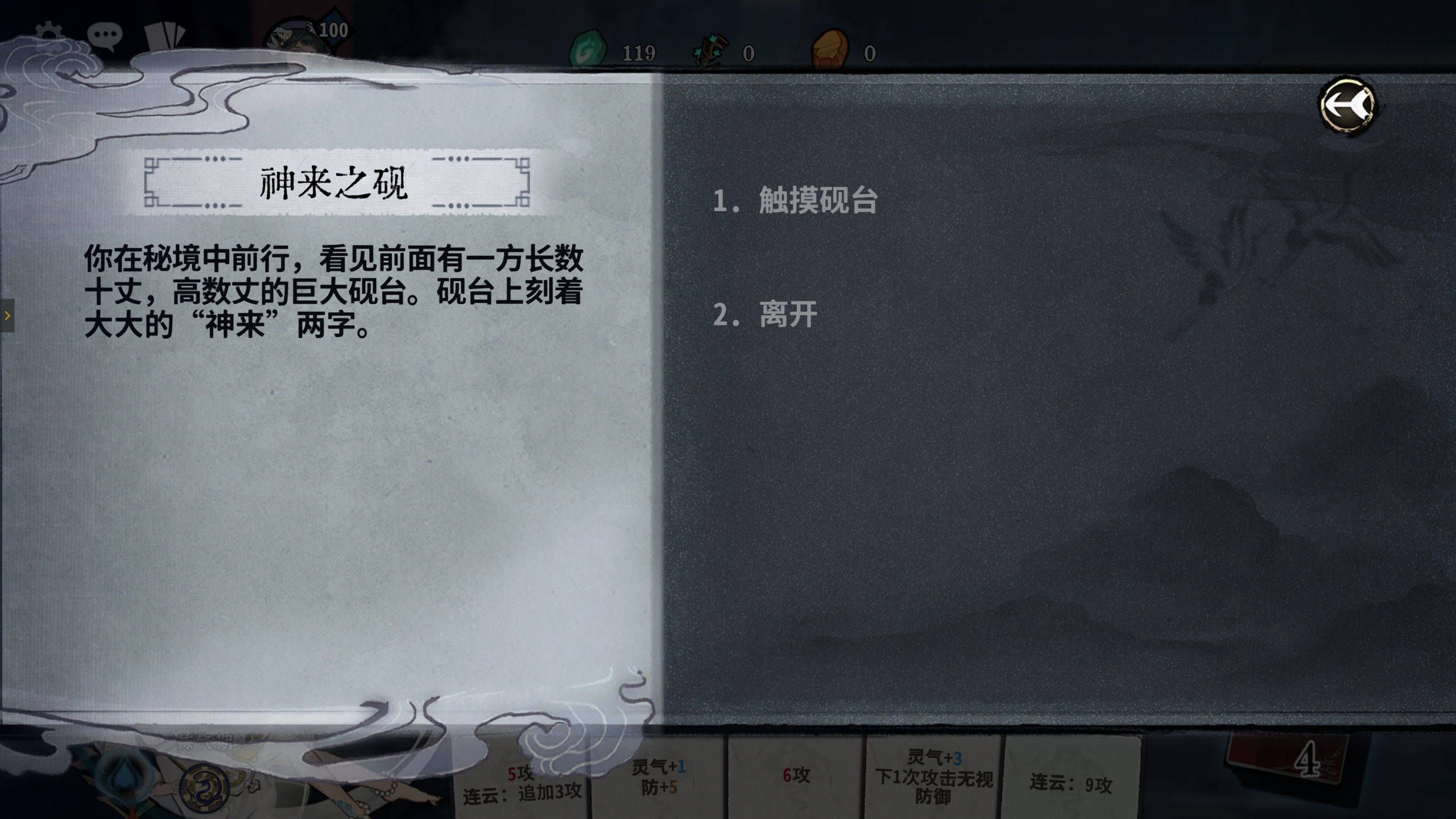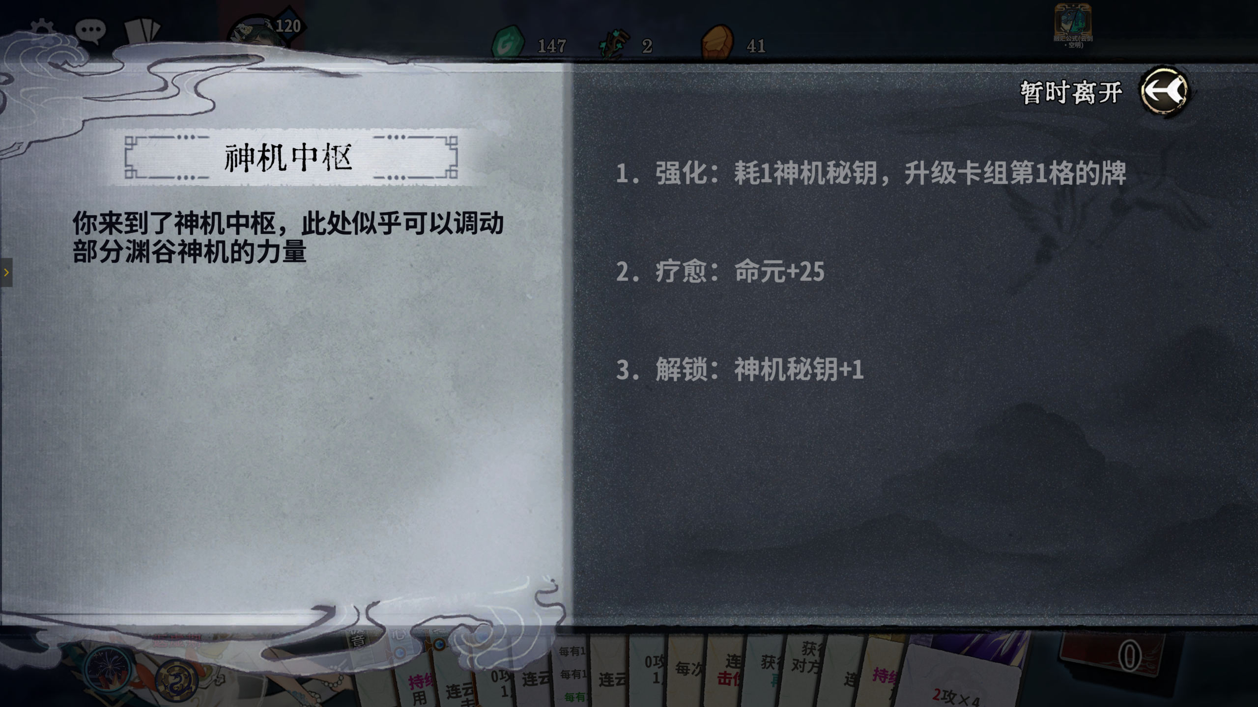 商店中可购买卡牌、换牌机会、生命上限、神机密钥、命元等。有个随机事件是商店全部物品打折,这个事件前期看到必选。