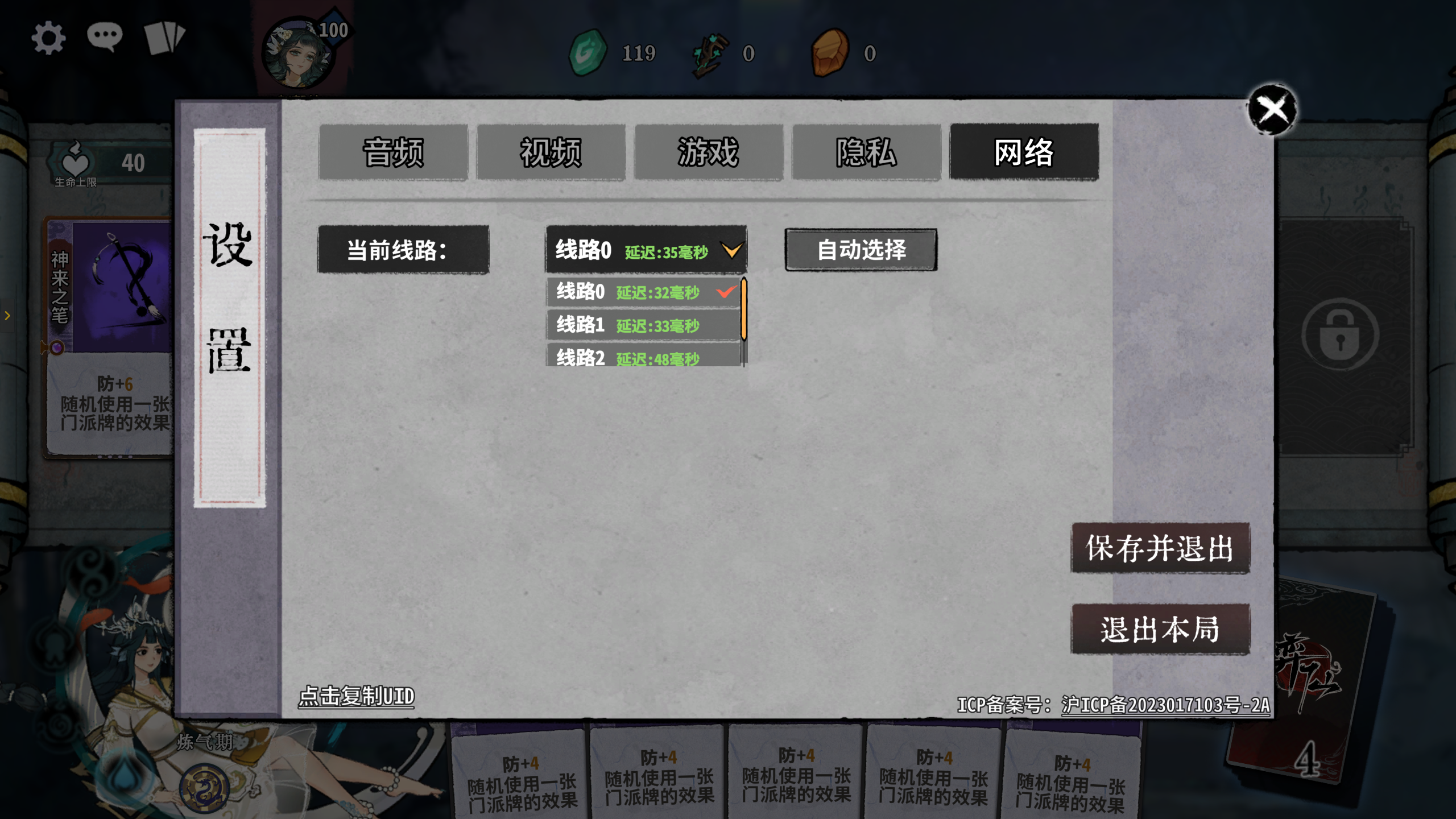 “拔线”方法:点击左上角的设置,选择“网络”界面,在换一个当前线路(例如当前线路是0,则点击线路1;当前线路是1,则点击线路0,推荐这2个线路来回切换),然后重新进入游戏即出现跳过战斗过程后的结果,同PVP一样,因原理类似炉石传说酒馆战旗的“拔线”而得名。