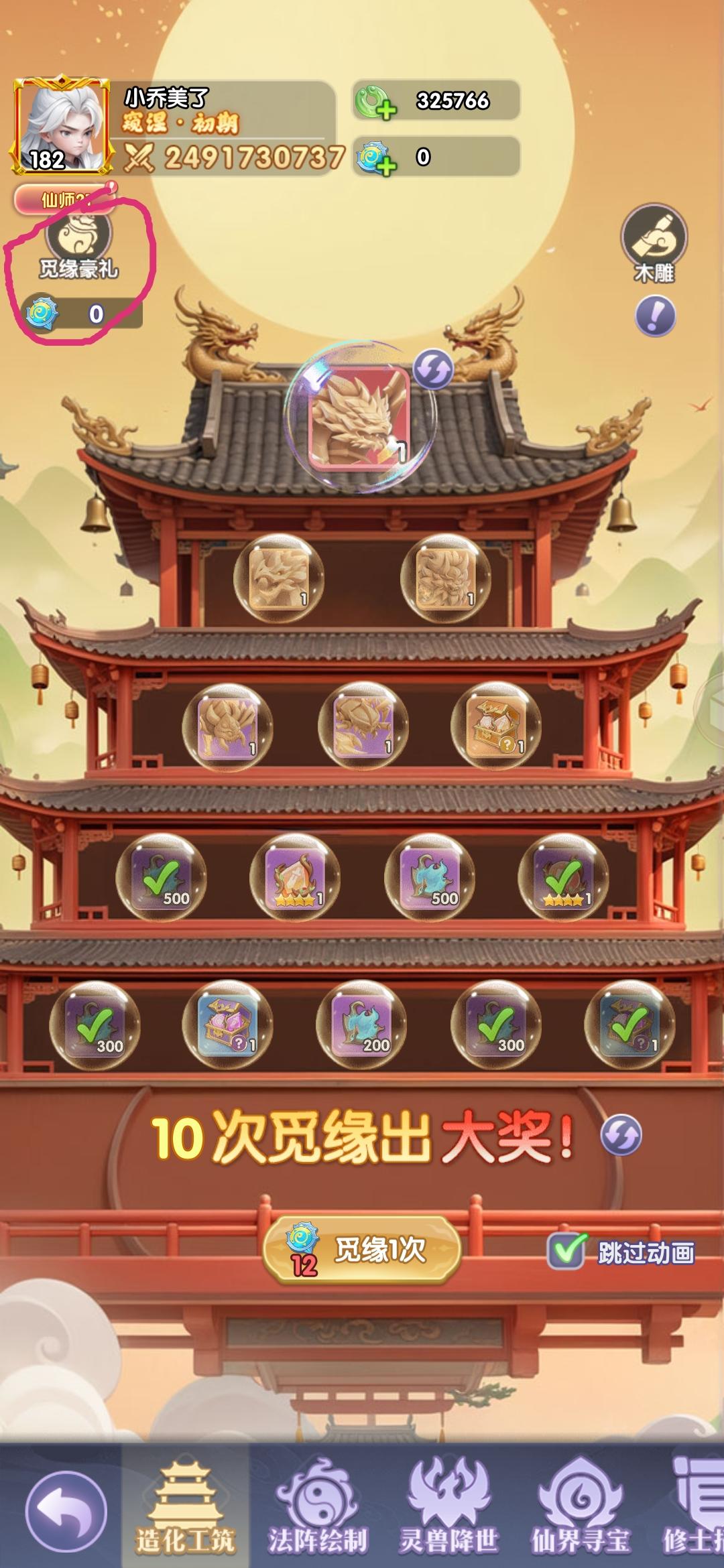 要想保底获得心愿大奖,需要氪6+30×3+68×3+128×3=684元。和弹出来的648限时礼包价格差不多,但是还是购买礼包更划算,可以获得紫色、黄色木雕碎片。在抽木雕时,可以有几率获得红色、黄色、紫色木雕,还有灵石、材料等。
