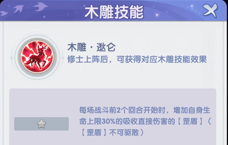 木雕狄仑:前2回合直接套个生命上限30%的盾,这个盾清除不掉的,毒王鼎这些是没用的。而且这个盾是防受到直接伤害的护盾,有点犀利。