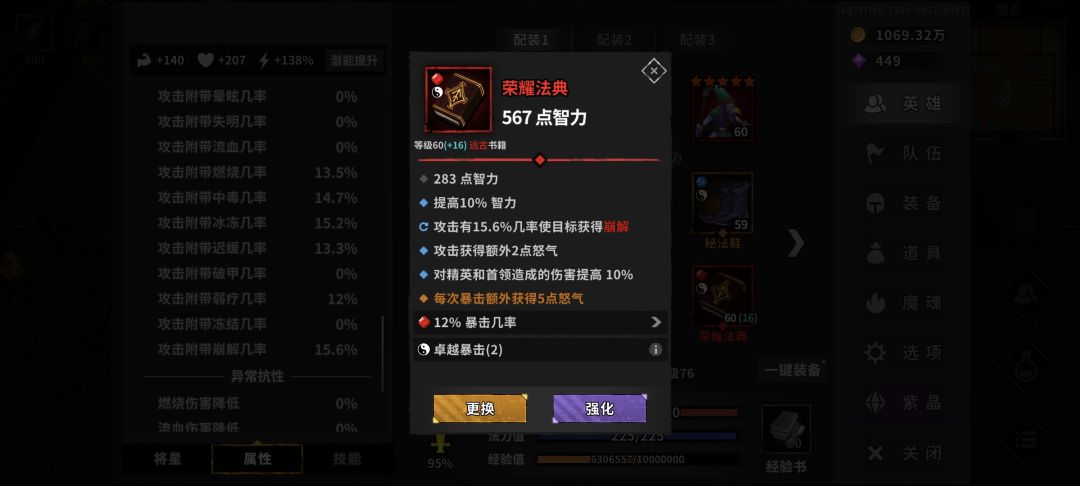 新手玩了十来天无限庞统卡二周目120层,再上刷不动,砍神也砍不动,吕布也没成型,请问还能怎么提升呢?要不要接着过周目,过周目资源奖励会不会变多,下面附我现在的装备魔魂图