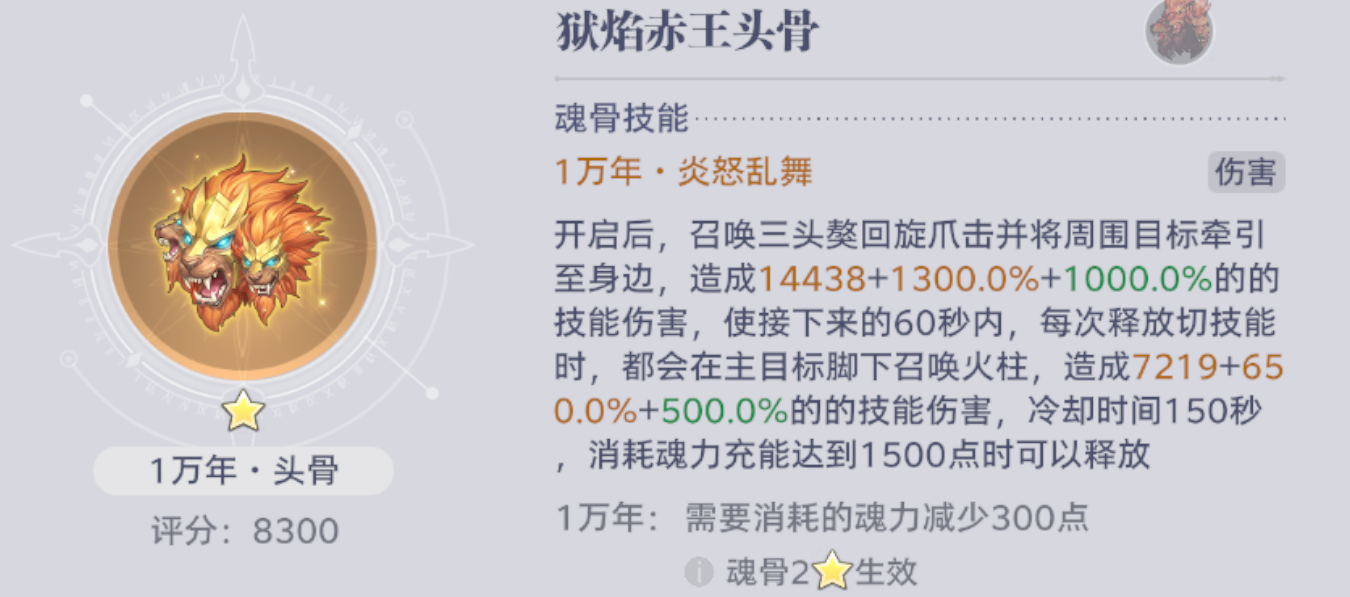 冷却与消耗:冷却150秒,需1500点魂力充能释放,1万年效果可减少300点魂力消耗。