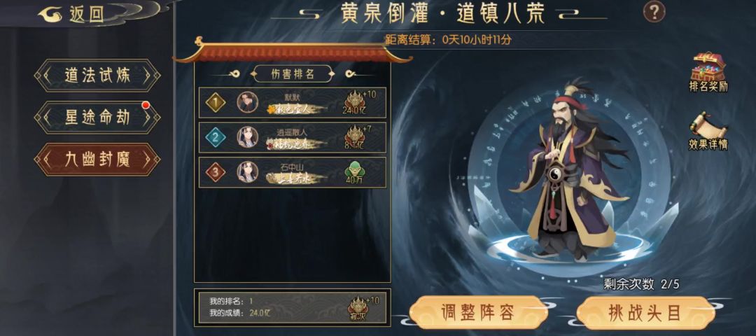 【高配展示】九幽试炼之封法道人高配阵容分享