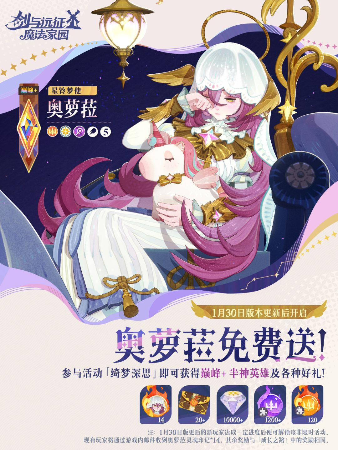 1.6.1版本将于1月30日重磅上线,参与活动「绮梦深思」即可获得巅峰+半神英雄及各种好礼!