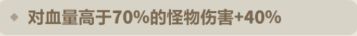 适配剑仙,剑仙本身对生命高于50%的怪物有40%的增伤,该图腾能进一步强化对高血怪物的输出能力,搭配满血增伤、暴击率、满血暴击能打出一个高额的伤害。