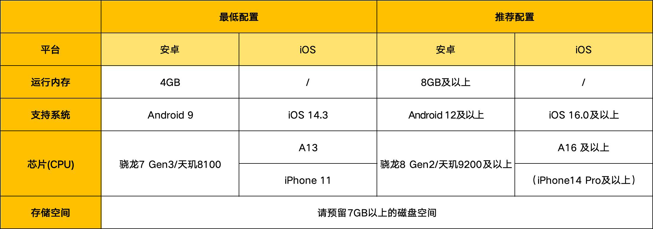iOS推荐配置为系统16.0及以上,CPU推荐 A16及以上(iPhone14 Pro及以上);