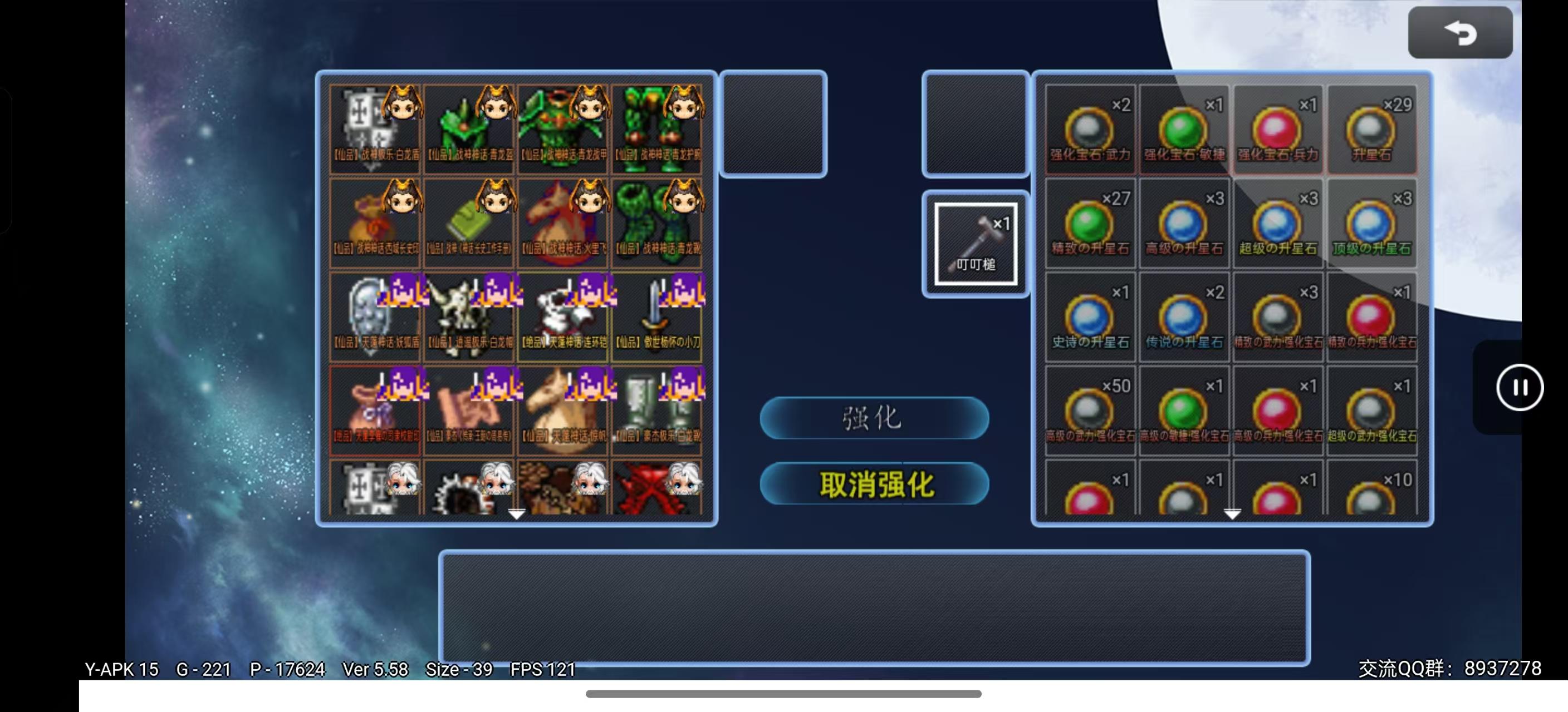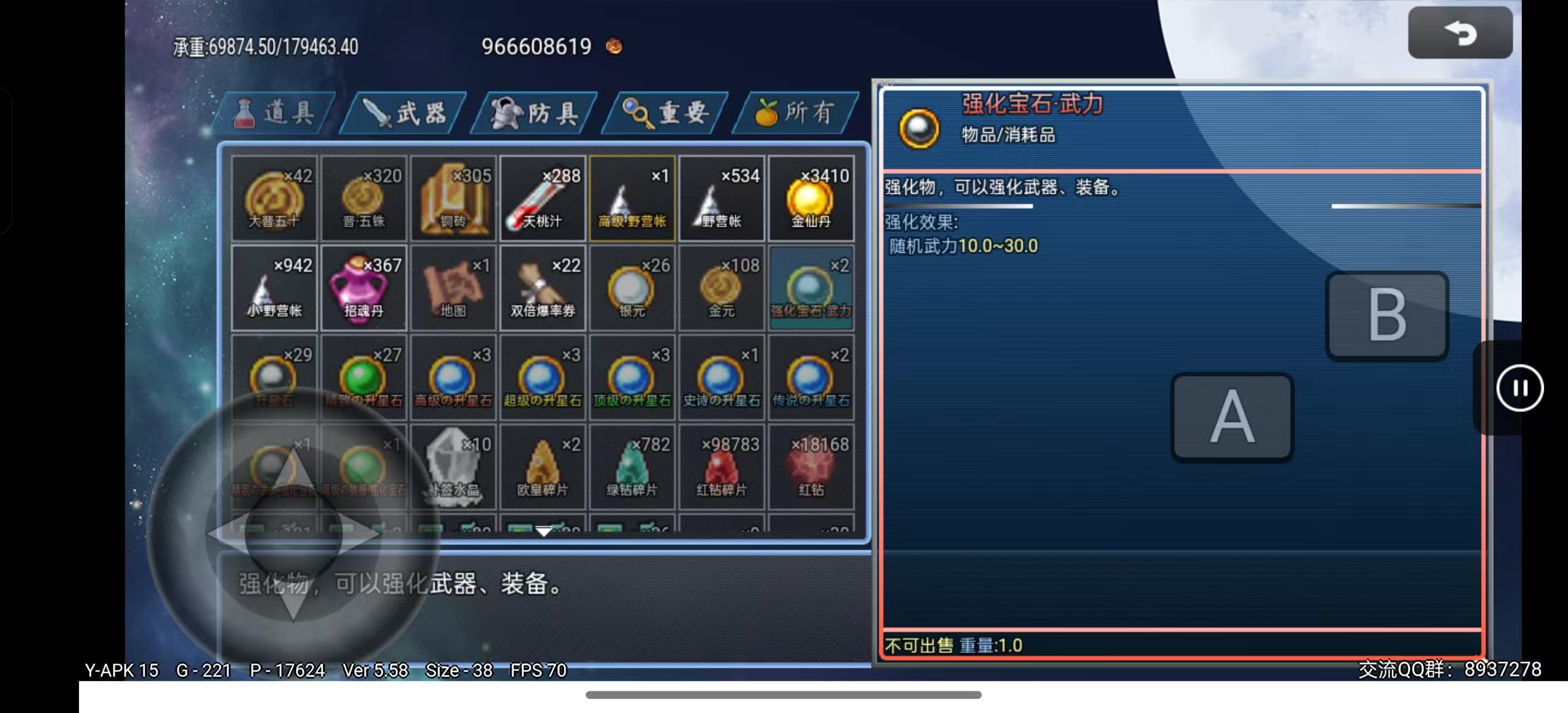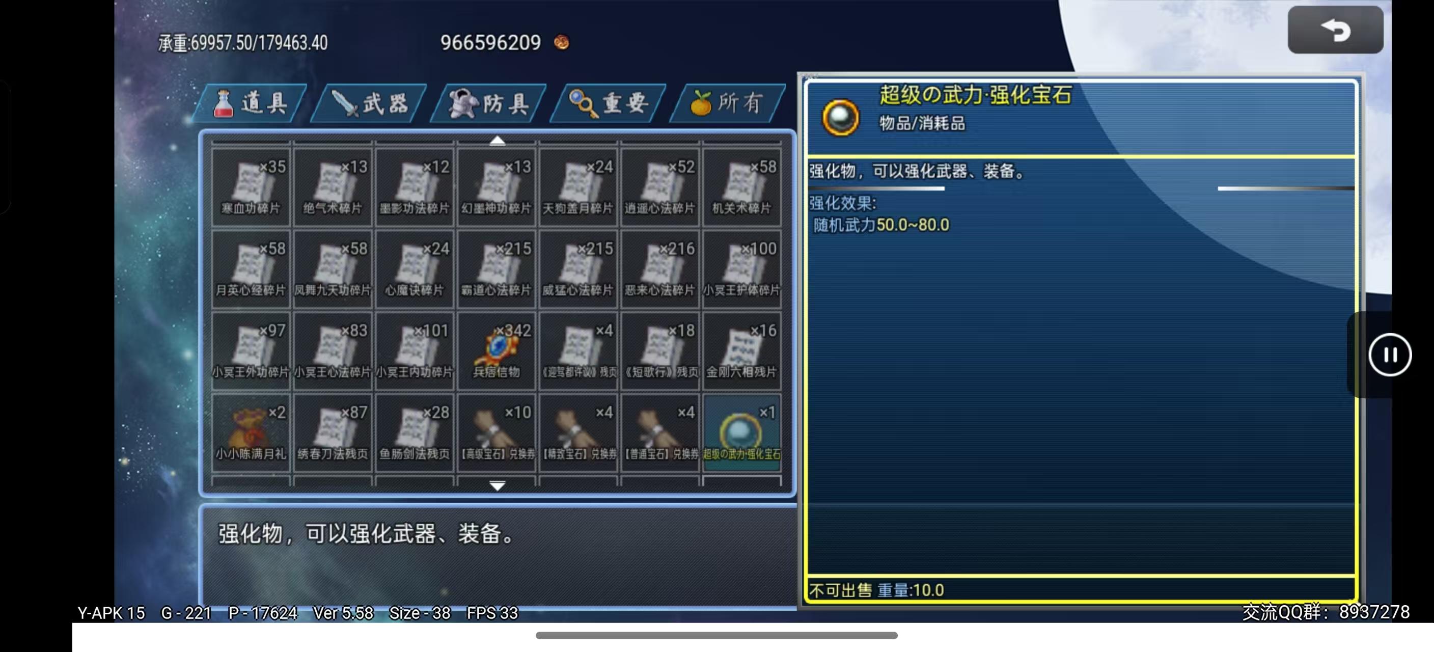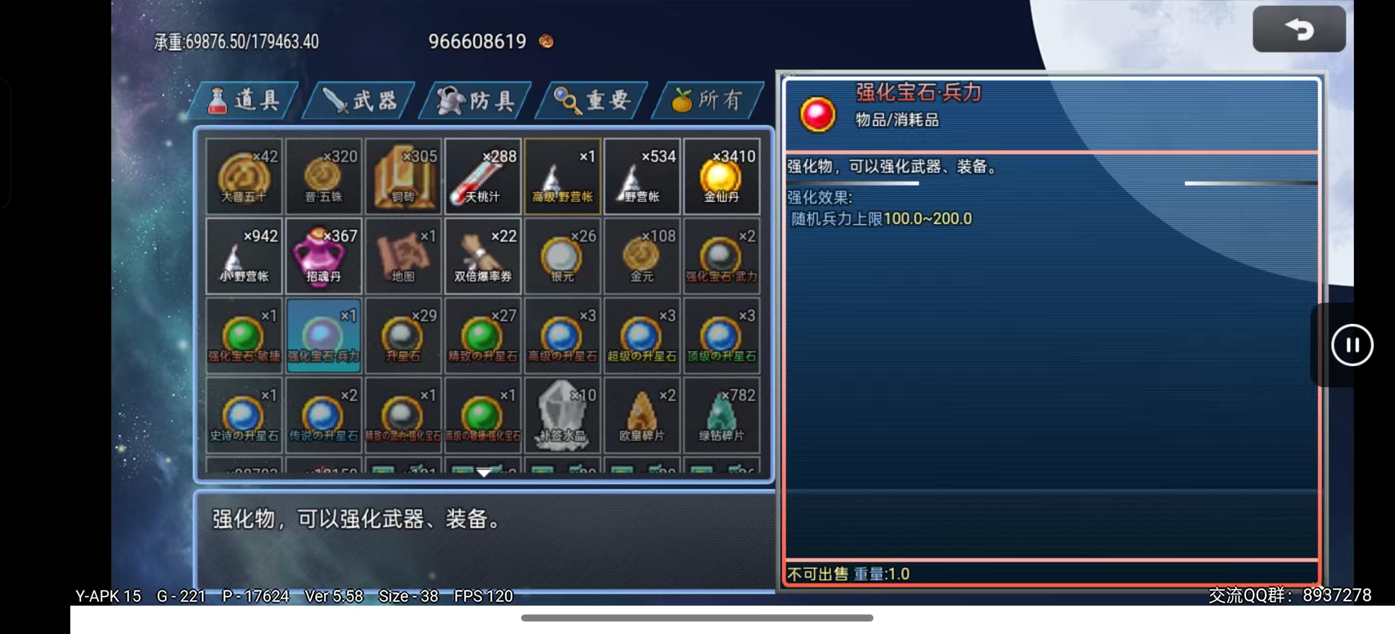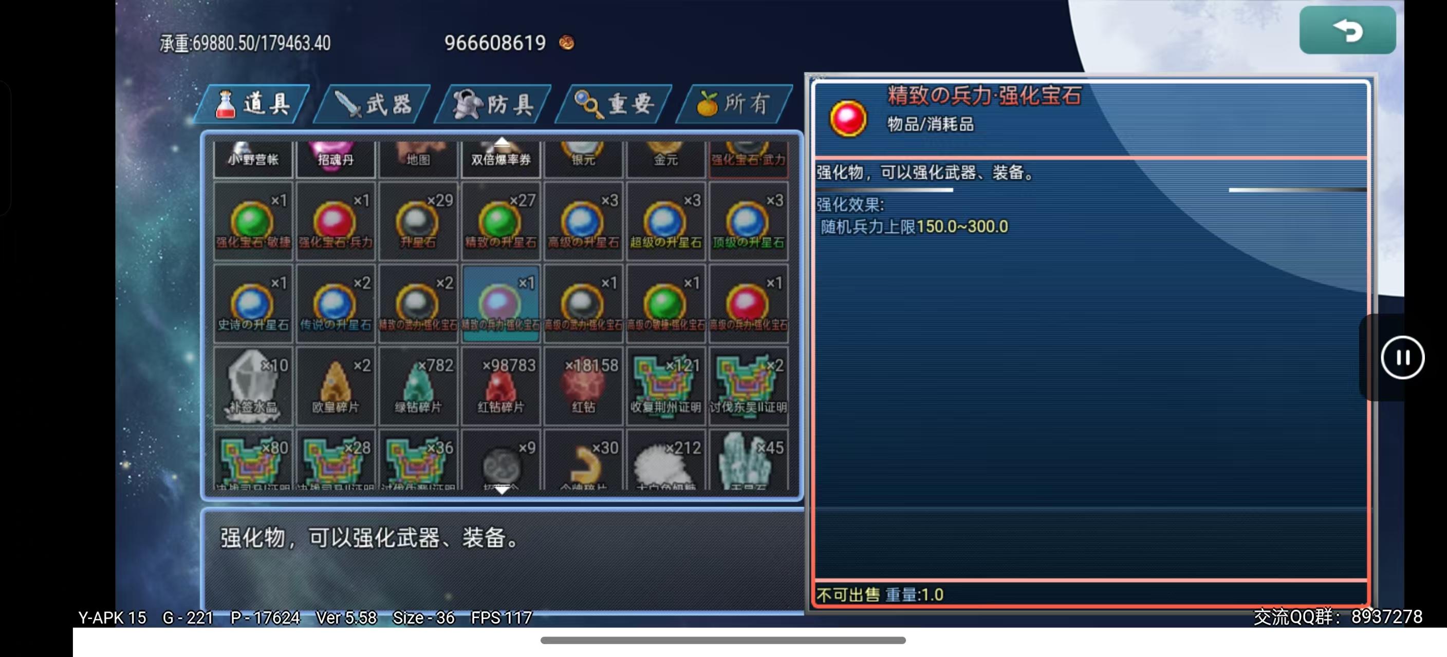 强化宝石随机加成10-30武力、智力、防御、智防、速度、幸运(可通过SL强化到最大值)