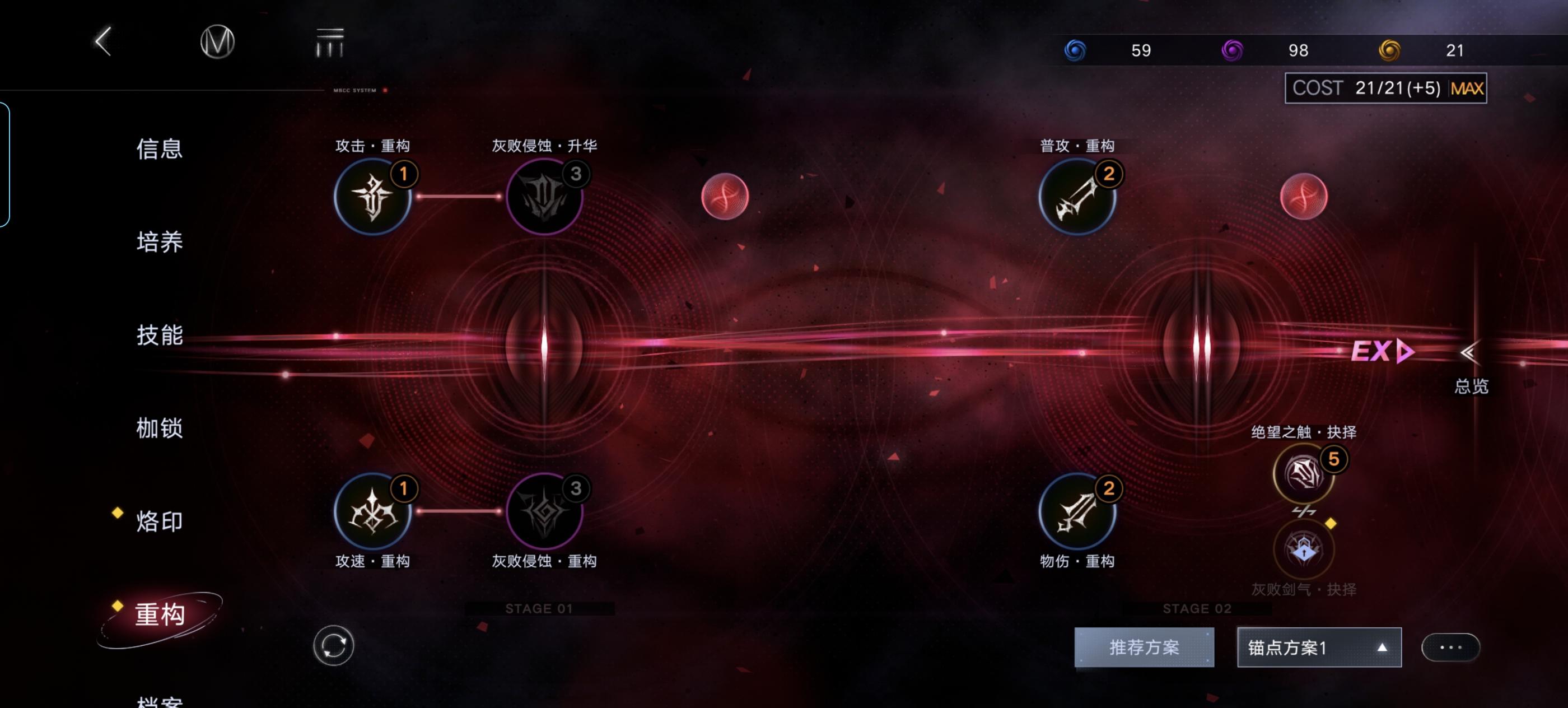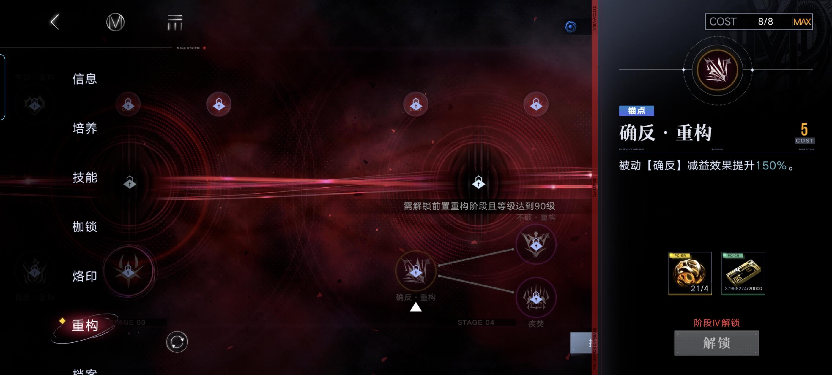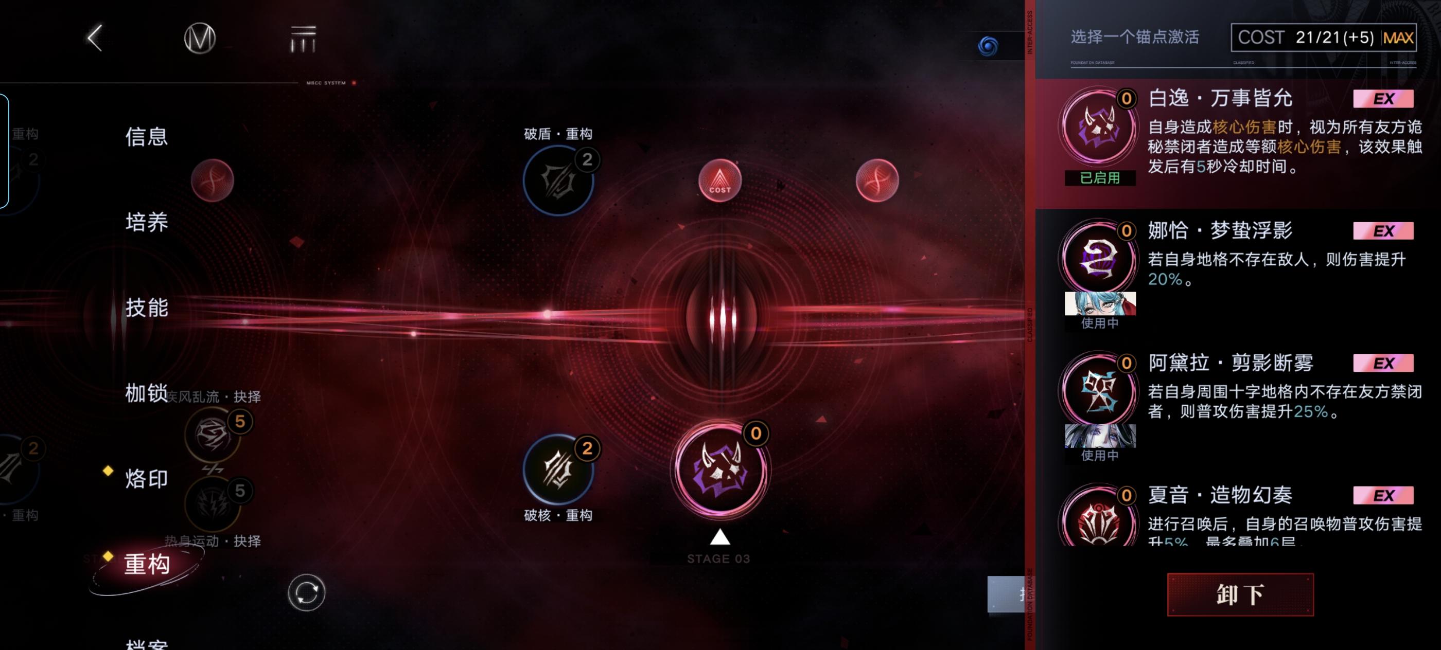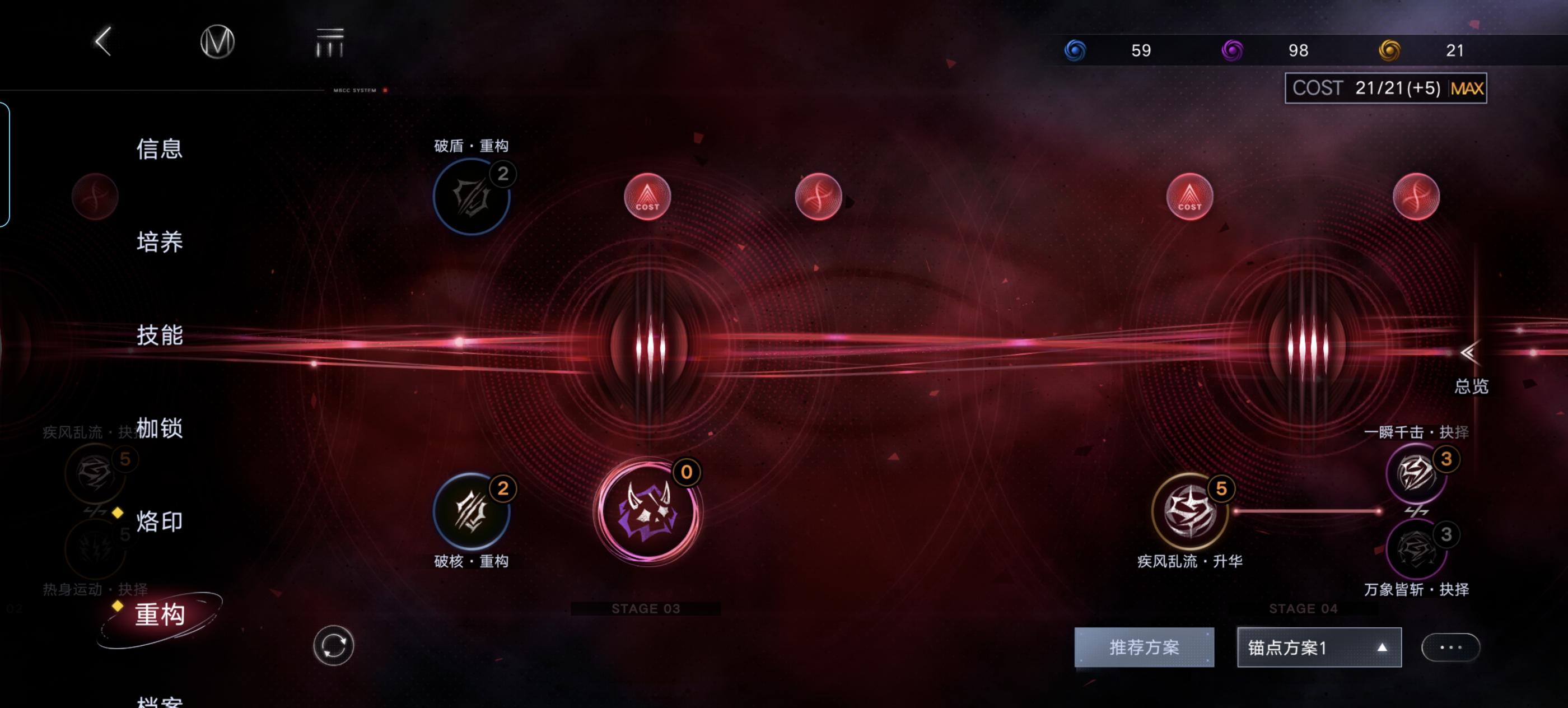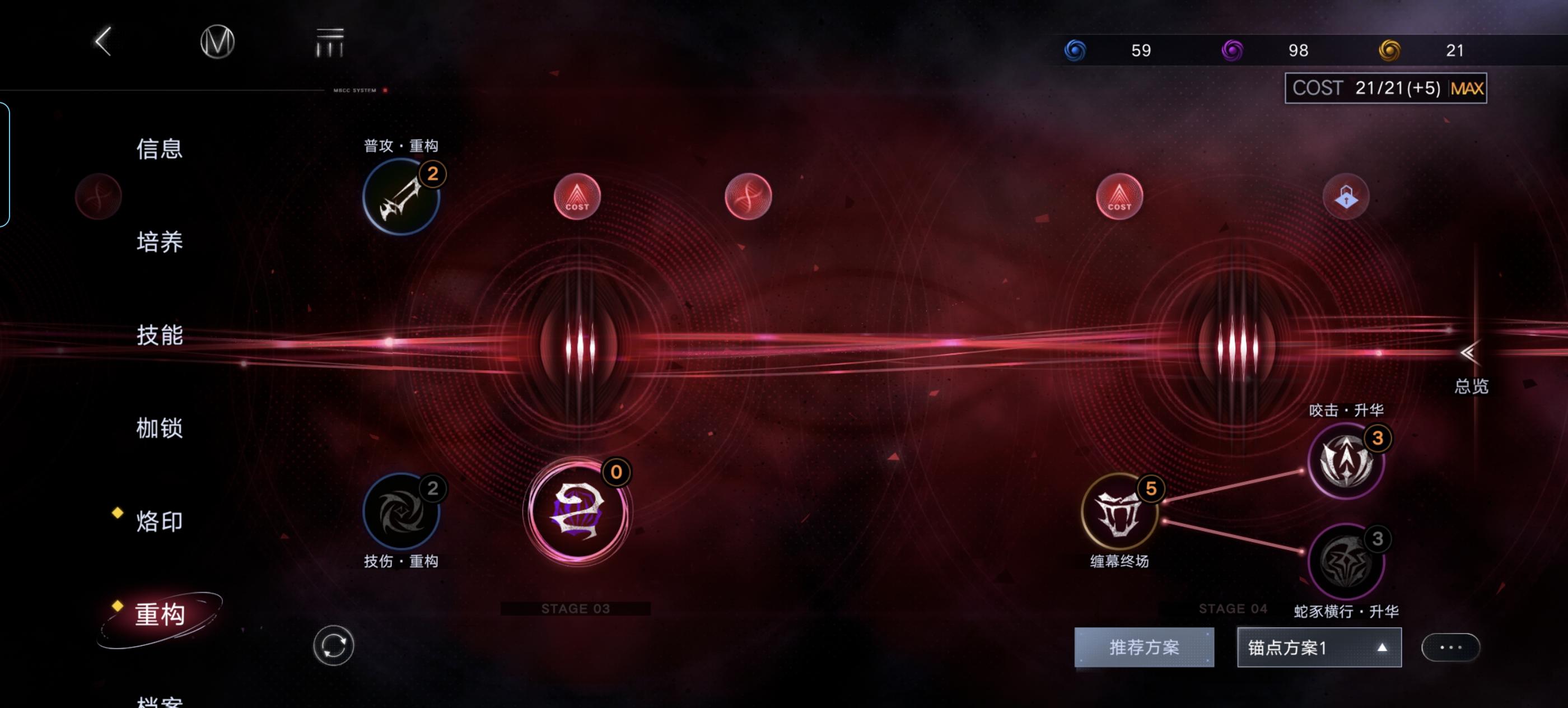 重构金豆是最稀缺的,紫豆蓝豆后期都会有大量富余,这两个节点全点就行。 萌新要注意,刚开始重构的时候要精打细算,间隙打满2-3期基本就能紫豆蓝豆自由了。