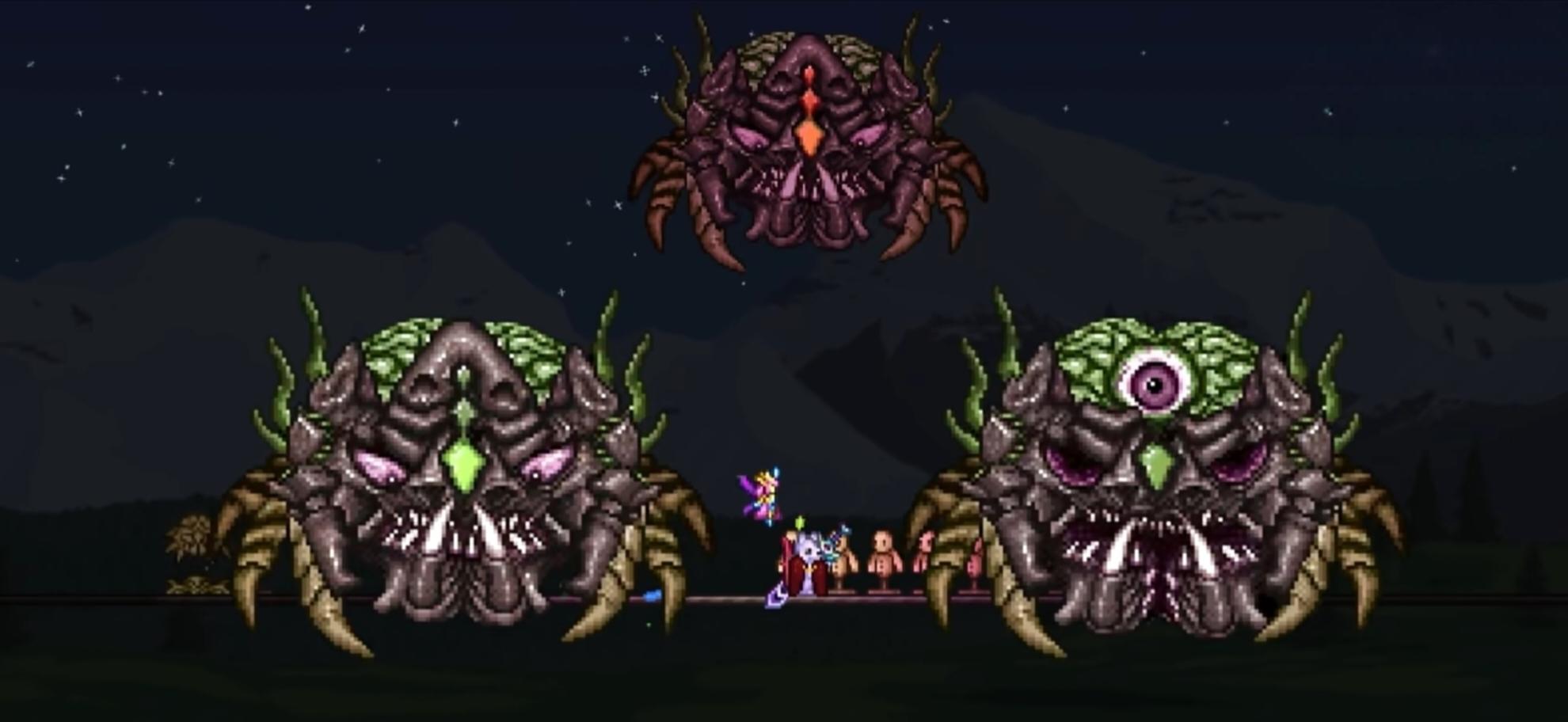 本彩蛋图为1.4.4全新彩蛋图,同时也是彩蛋图中唯一一个缝合全地型的世界世界特性:创建世界的时候,鼠标会变成邪恶的笑脸并且左边的标志会在腐化和猩红中不断的转换,泰拉瑞亚的标志会颠倒过来,并且颜色变得灰暗。世界创建完世界的标志会变得混乱由于是缝合怪地图种子,拥有以往所有彩蛋图的特性。原三王无法召唤,合并成一个新的boss,叫做机械美杜莎