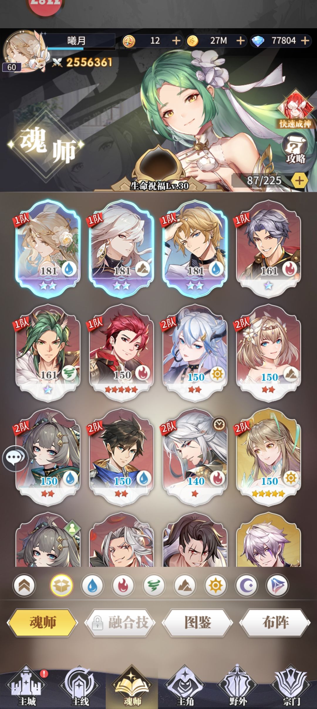 目前战力256w,爬塔910层,今天出小店活动花了不少钻石现在还剩7.7w