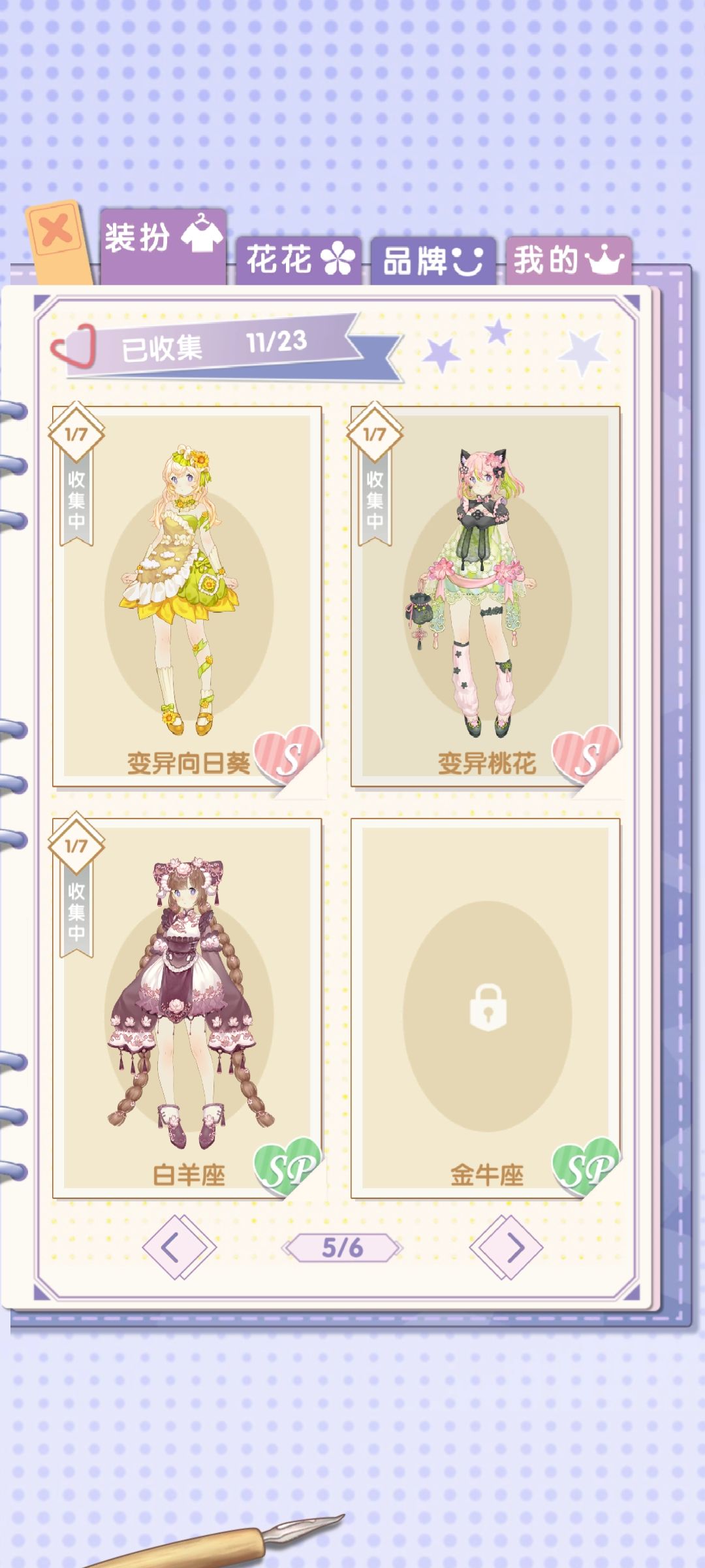 花盆全解锁,背景装修全开了,只有要钻石的衣服,还有星座的衣服没收集了