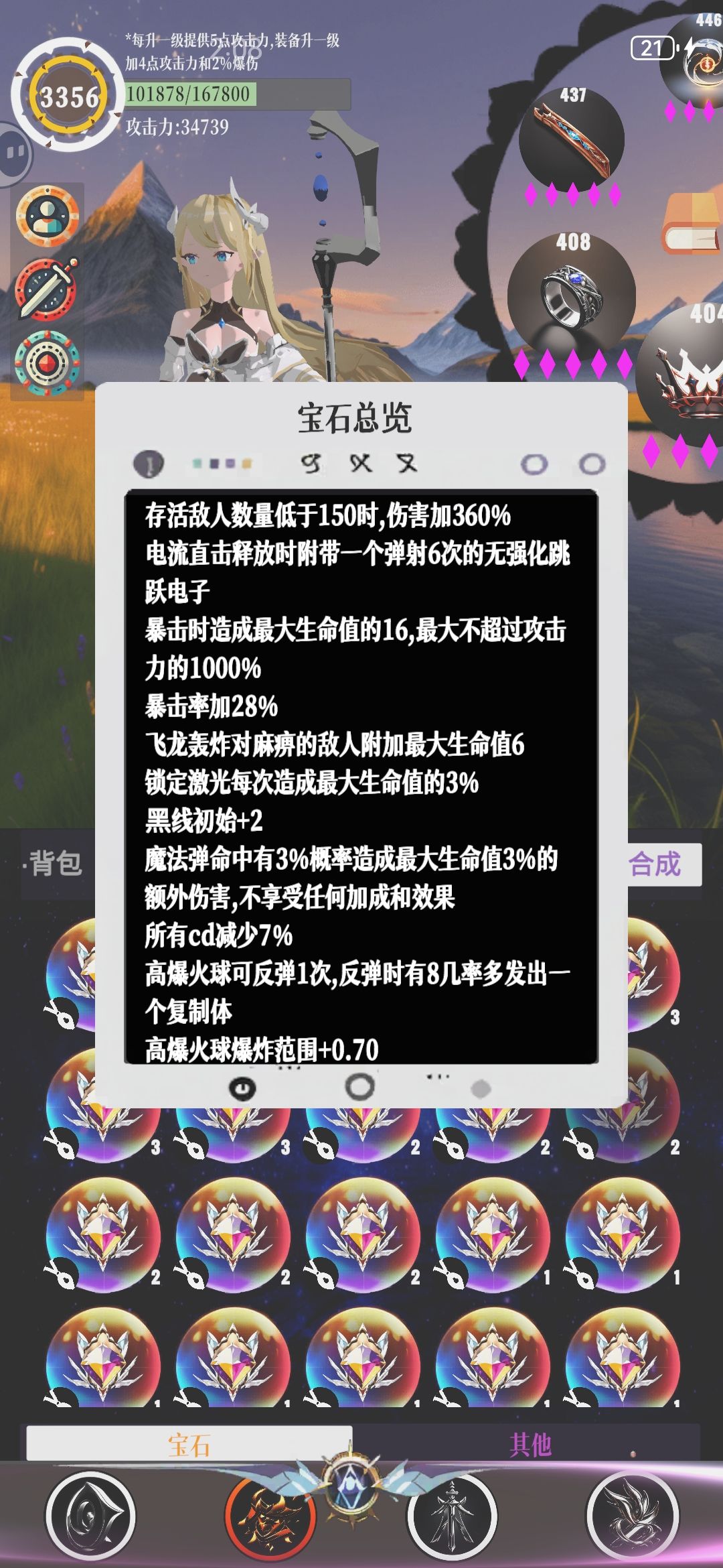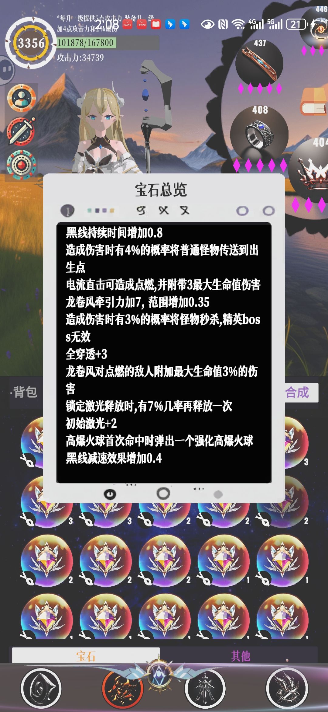 技能选择和宝石选择按我的来就会很简单啦,有些技能虽然前期伤害高但到了后面就不行了,比如风刃术,下棋等等,冰弹、冰冻新星不论前期还是后期伤害都不行。值得一说的是我这里不是靠技能弹数量取胜的,带分裂的技能选项都没有选,弹射也没有用,这些虽然能加不少伤害,但是会卡死闪退