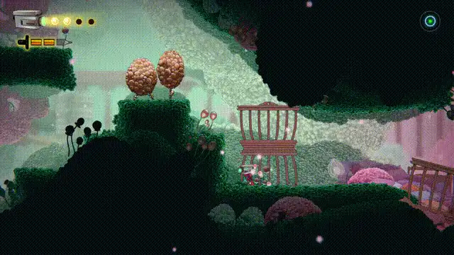 战斗系统方面,本作的难度曲线更为平缓友好,平台跳跃的容错率较高,陷阱设计相对温和,即便是该类型的苦手玩家也能在探索中获得流畅的乐趣,总体玩下来我觉得比《丝之歌》简单了不少。毕竟这款游戏主打“心灵探索”,如果让关卡成为玩家的绊脚石,我觉得会破坏游戏初衷,让玩家的注意集中在打怪通关上。游戏中每个敌人的攻击都是有迹可循的,在战斗中适当地进行躲避即可。