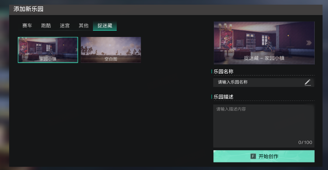 创建玩法时,超越者可以看见新增的玩法:捉迷藏