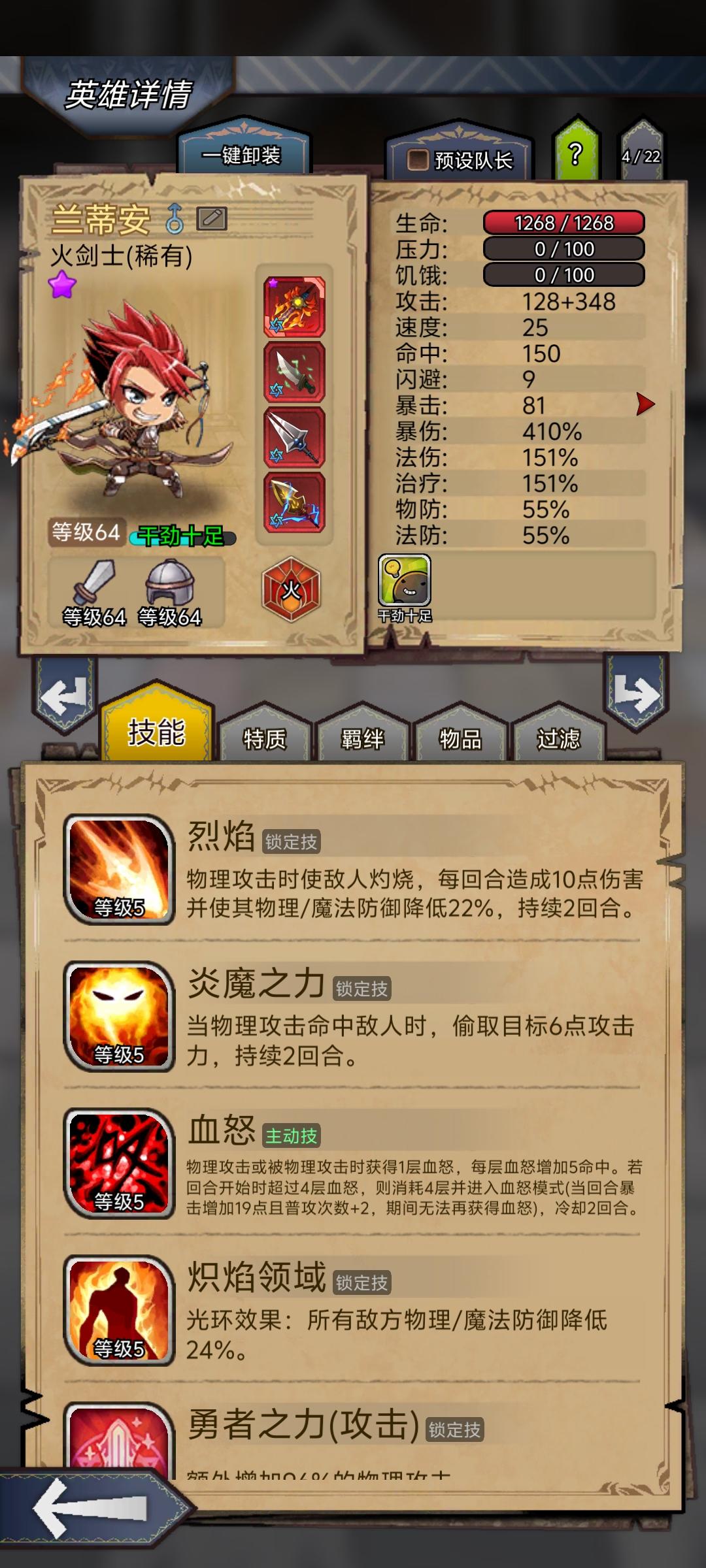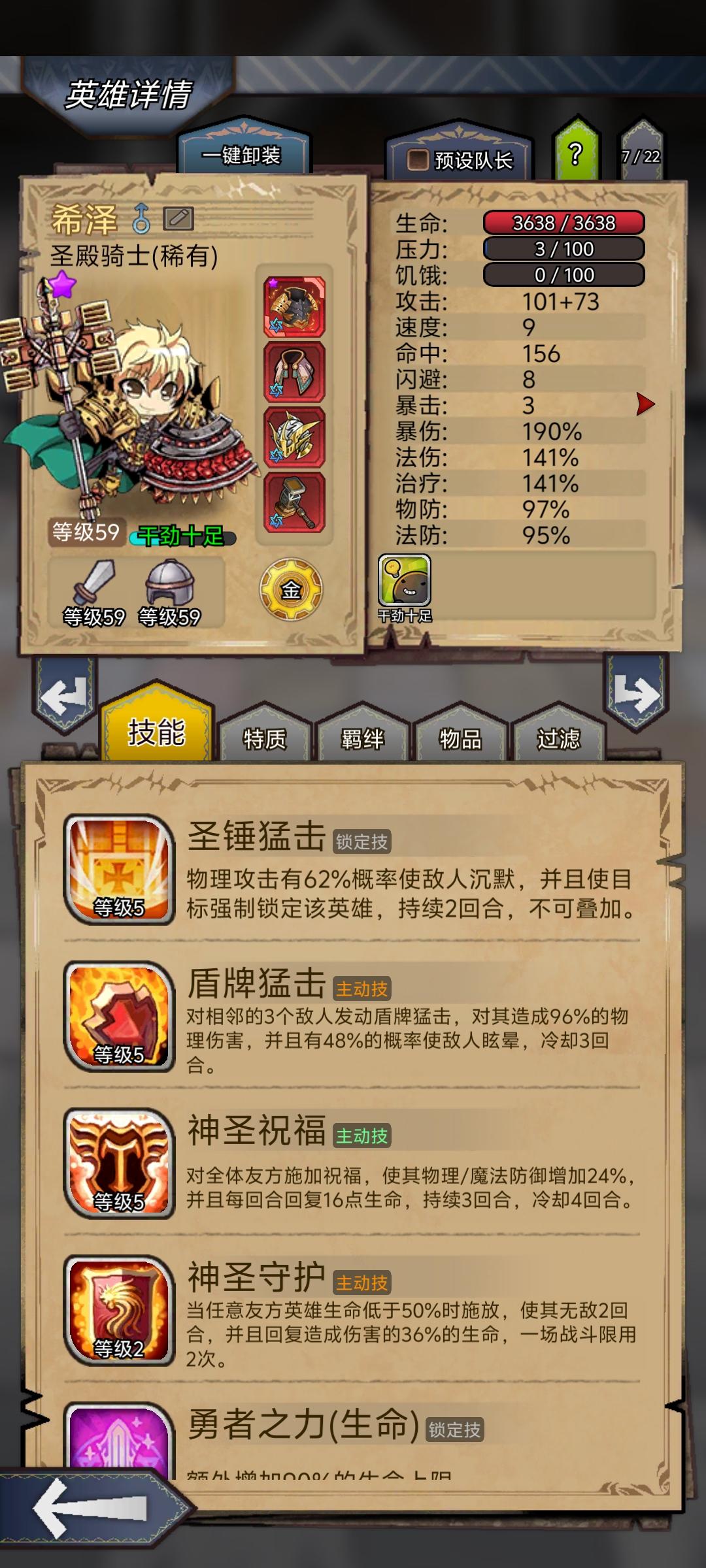 特质: 悬壶济世、战术大师、快若闪电、神医、钢铁之躯、冲锋、坚韧、格挡、嘲讽、军需官、游击队、抗压队