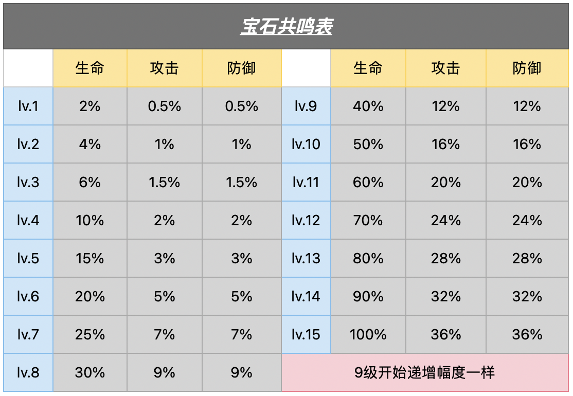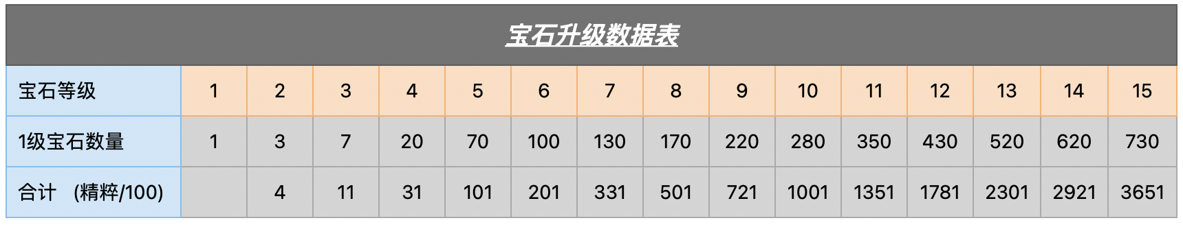 最新宝石升级数据表