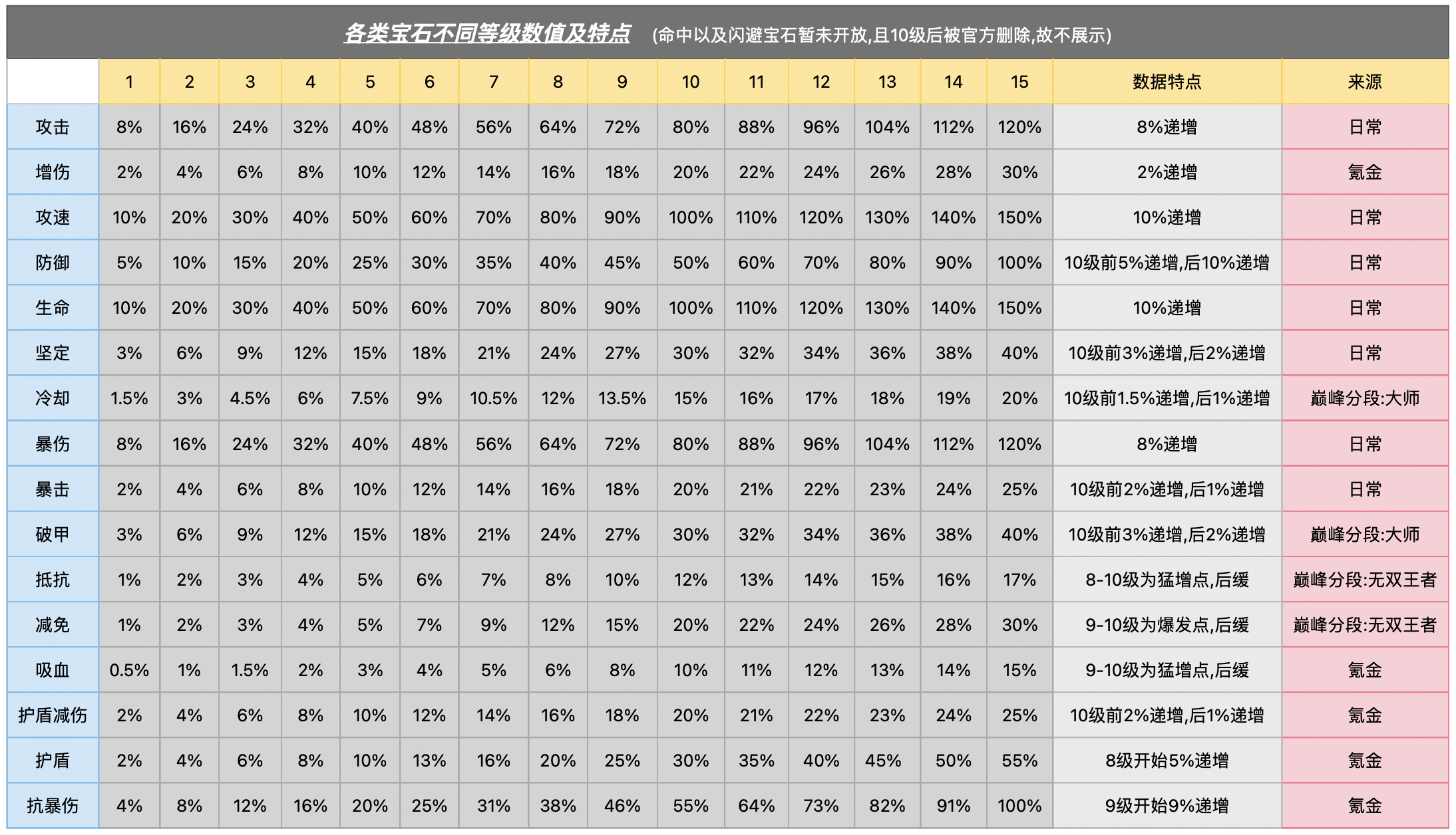宝石系统更新(只列数据,方便查阅;不做方向性建议)